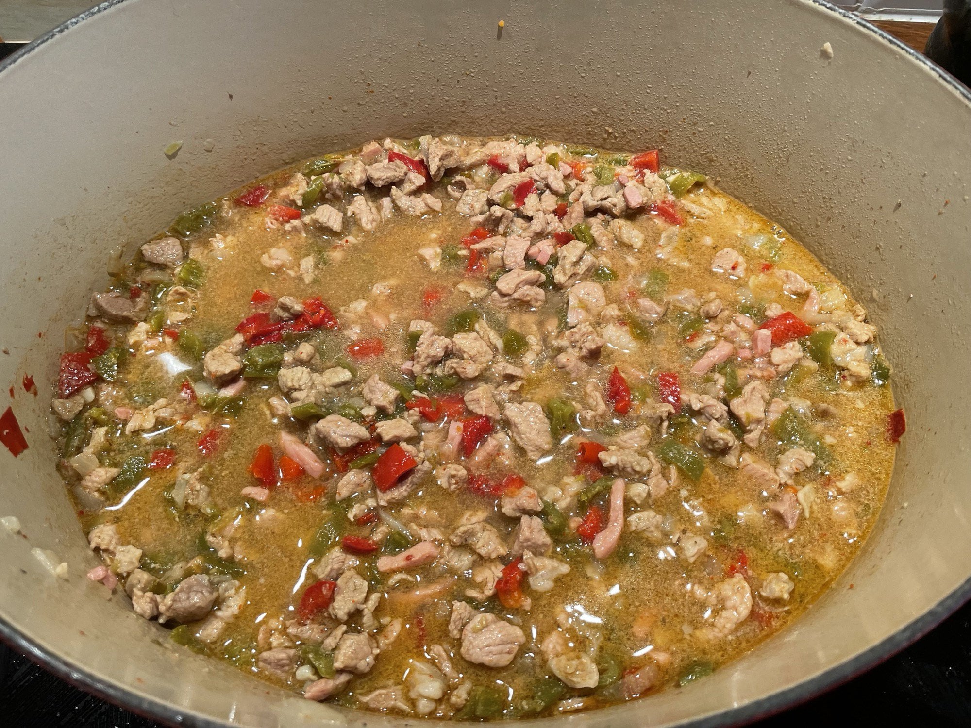 Et contrairement à ce que j’avais goûté dans un restau au Pays Basque j’ai mis de ma “soupe d’os” (genoux de veau très longuement cuit avec bouquet garni dans de la flotte, on filtre, et quand ça réduit dans l’axoa ça donne une sauce un peu épaisse et gélatineuse, un régal !).