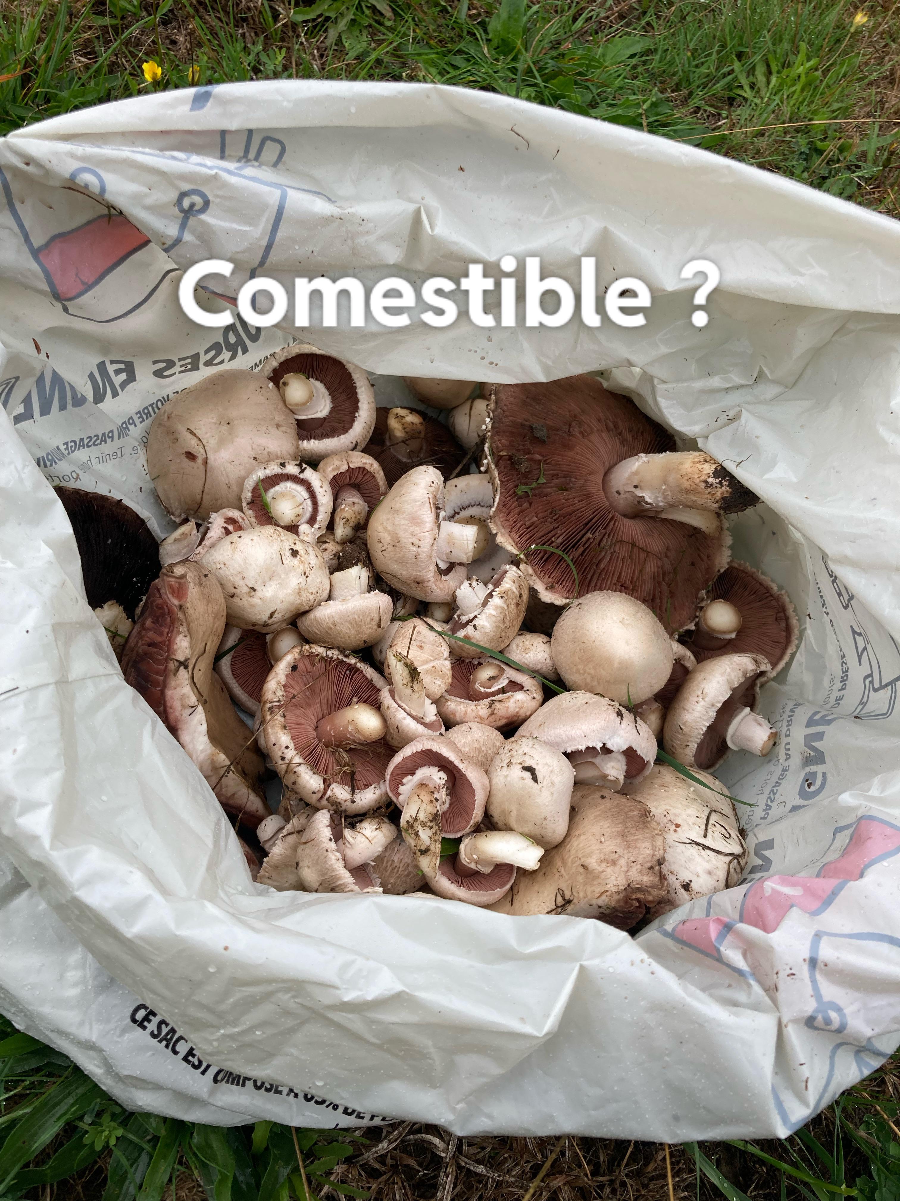 Ca ressemble a du rosé des prés… pas mal pour l’omelette. Deux choses, si la chair jaunit à la cassure, poubelle (agaric jaunissant, degeu et légèrement toxique) si les lamelles ne sont pas roses franchement, poubelle (les jeunes amanites vireuses et printanières peuvent ressembler a un jeune agaric champetre, la confusion t’amènera au cimetière). Dans le doute un mycologue (la pharmacie et les 2 heures de cours de mycologie dans le cursus est pas vraiment la solution à moins de tomber sur un passionné)