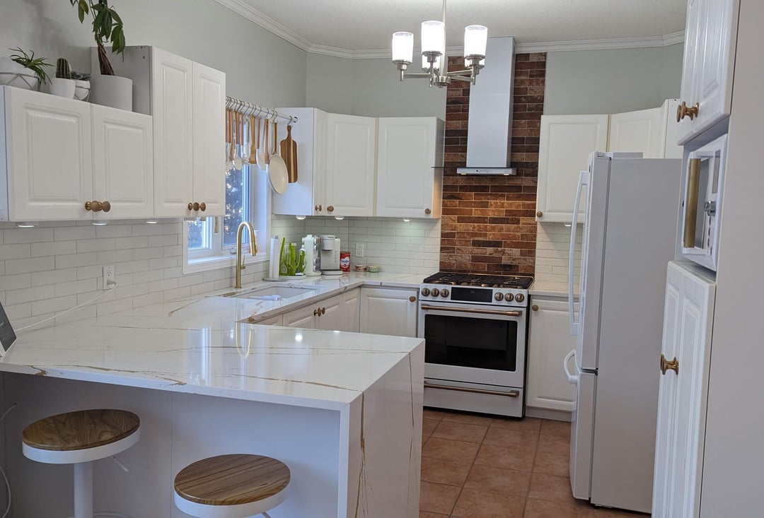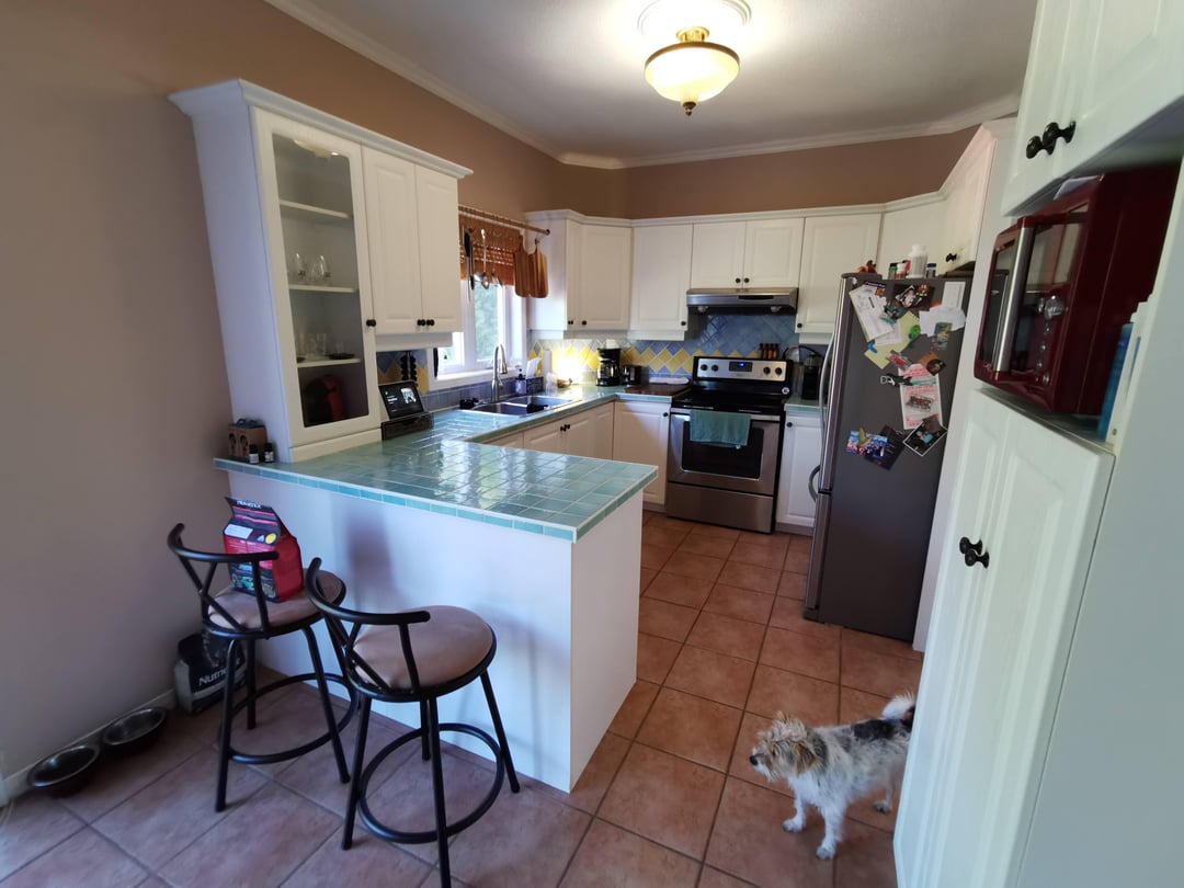 Recently went through some renos in the kitchen. We decided to work with the cabinets and flooring we already had. And pretty much changed everything else. Let me know what you think! Ft. My dogby Local_Stop_7585 kitchenKitchen Porn 8 Comments louisdeer 3 years ago I prefer the teal tiles. Dry-Coast-791 3 years ago It’s so much better! What color are the walls? winterbird 3 years ago I love the new counter top! The backsplash, wall color, and the stove are cute too. Jlx_27 3 years ago Thats not the kind of hood I would choose but 8/10 overal.Dog: 14/10 good doggo. sharipep 3 years ago I love it!!Also hello to your pupper – what’s it’s name?? nucleararms 3 years ago the hood vent seems hilariously small? What_the_shit_Archer 3 years ago I think it looks great! The hood vent is a normal dimension if you take into account the glass that’s hard to see in this pic. Ill_Kaleidoscope_812 3 years ago Huge fan, the countertop, backsplash is amazing. Where’s you get the new bar stools at?Write A CommentYou must be logged in to post a comment.