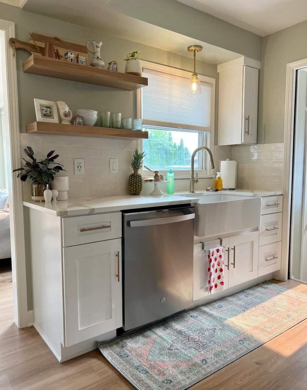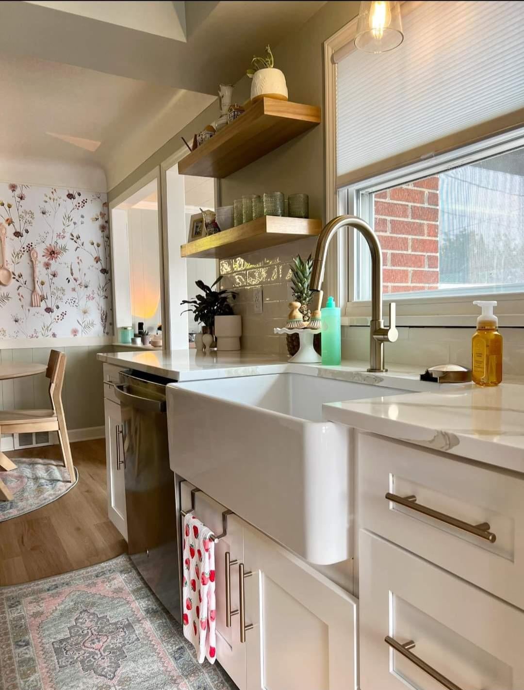 Why not place the strawberry towel on the dishwasher handle rather than adding that hook-on one by the sink? Other than that: so lovely!