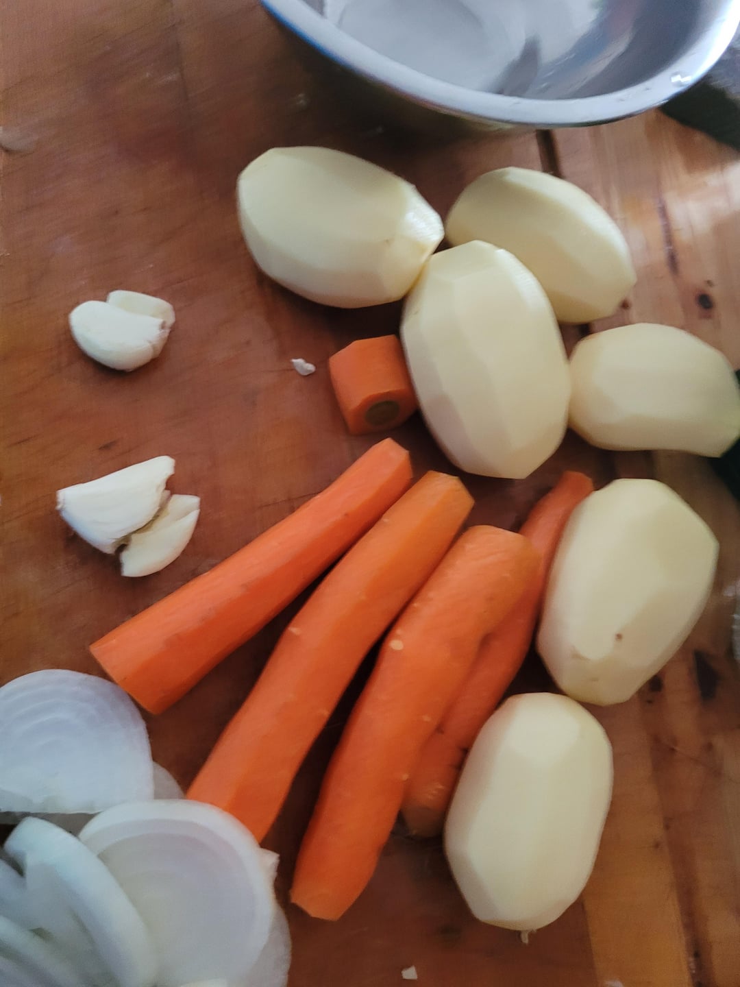 Ça a l’air bon, et copieux avec les pommes de terres. Moi j’en mets moins (2/3 Max) je rajoute un poireau, des navets, et un bouquet garni. Mais surtout je fais suer les légumes avec un peu d’huile d’olive avant d’ajouter l’eau.