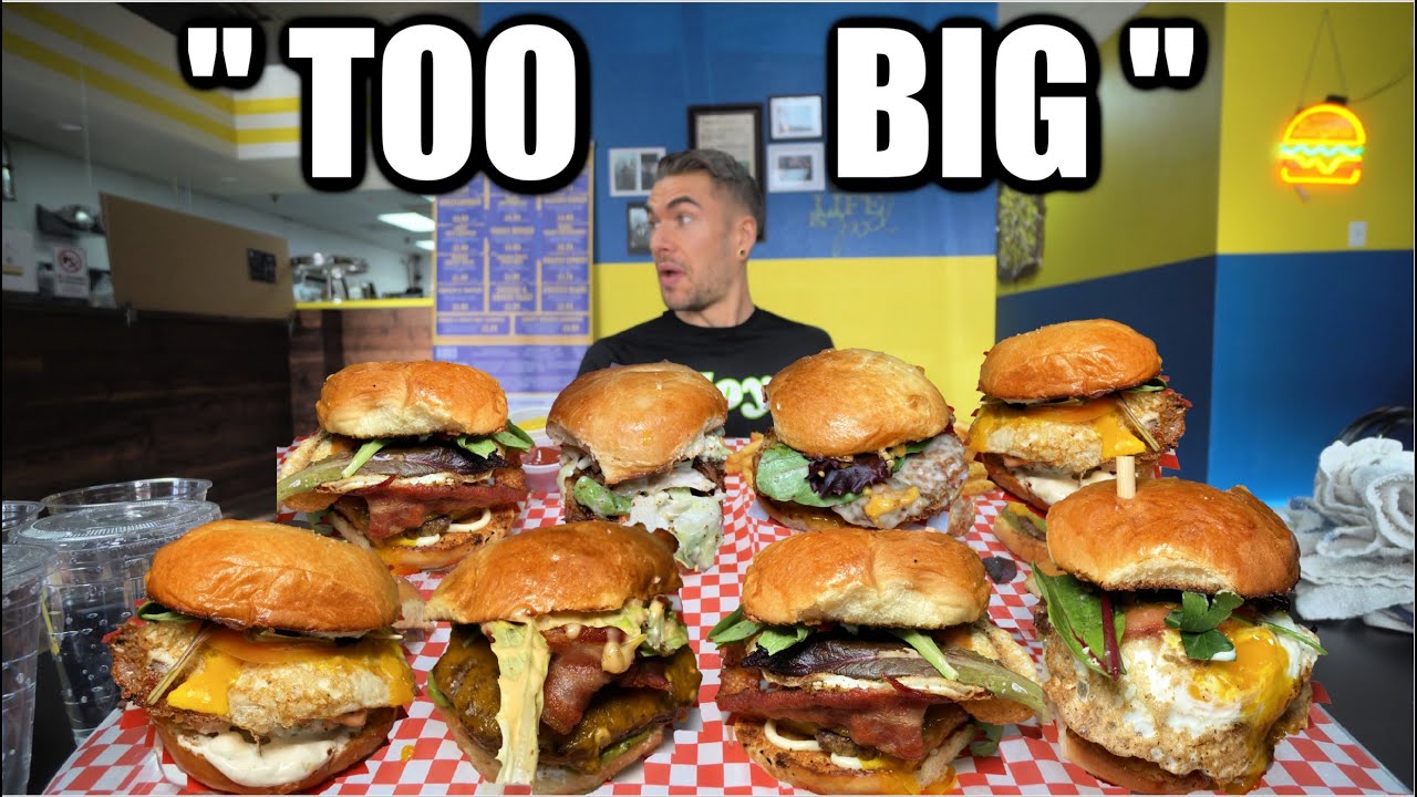 GOURMET BURGER CHALLENGE! Today we try a massive Las Vegas Food Challenge just off the Las Vegas Strip consisting of Eight burgers and a large seasoned fries! We had beef burgers, bison burgers, chicken burgers, and even salmon burgers at the Kraken Cafe! We had only 35 minutes to complete this massive burger challenge in order to the get $100 meal for free. This Las Vegas cheeseburger challenge was not a slider challenge, these burgers were massive with some weighing up to 1lb! All the burgers were made on their homemade Hawaiian style sweet roll (kind of like a kings Hawaiian roll). This was a great las Vegas burger, and a hidden gem Vegas restaurant! They even offer all day breakfast. Can we complete this massive Las Vegas Burger challenge? Or will this Vegas food challenge beat us? Lets find out in this burger eating challenge and eating show!