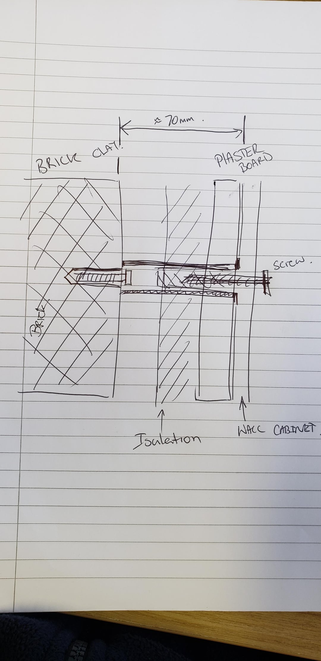 Well I have spoken to some people and listened to the Internet…. looks like I need to cut out a section of plasterboard and brace behind with wood and then replace the plasterboard…. its not quick and it’s not easy. But it’s better then picking the cabinet and contents off the floor after it falls off……