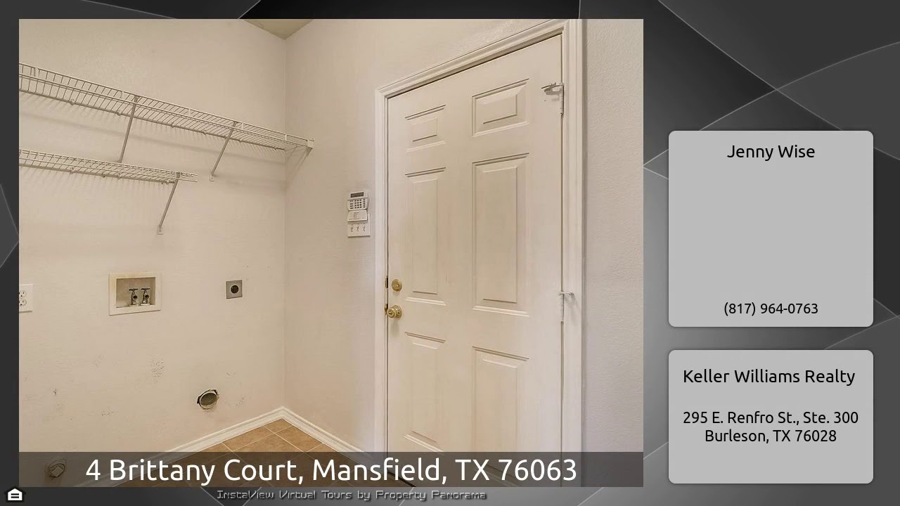 The Virtual Tour for the property at 4 Brittany Court, Mansfield, TX 76063 listed for $275,000: Other homes for sale by Jenny Wise of Keller Williams Realty: Lovely 4 bed, 2.1 bath home in the Walnut Creek Valley neighborhood. This home sits in a quiet cul-de-sac in the highly sought after Mansfield school district. Tons of features in this home including the study with french doors, formal dining, and the living room has an awesome pellet wood-burning fireplace that heats the entire house! This home also has a central vacuum system and the exterior walls all have extra insulation. The …