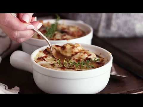 1) In a large pot over medium-high heat, melt butter. Add onions and cook, stirring occasionally, until deeply golden, 25 minutes. Add flour and cook 1 minute until no longer raw. Season with salt and pepper, then add white wine and let simmer until evaporated, 3 minutes. Add chicken and beef stocks and thyme and bring to a boil. Reduce heat to medium and simmer 15 minutes. Season with salt and pepper and remove thyme.