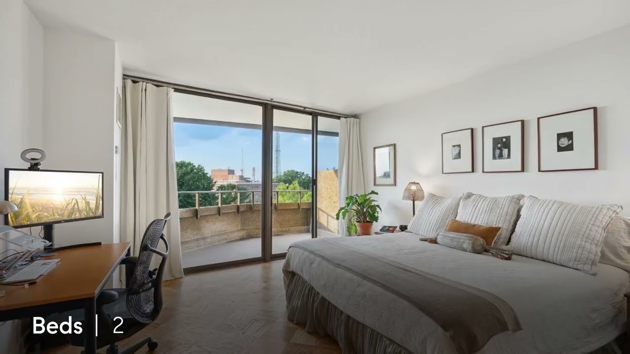 The Foxhall is one of the most beautiful addresses in Washington and residence 904 is one of the few one-level 2BR/2BA units on the 9th floor featuring a Fantastic Floor Plan highlighted by incredible natural light and some of the most breathtaking views to be found. Beyond the floor-to-ceiling glass doors, the spacious extra-wide wrap-around balcony has one of the most desired views in the Wesley Heights neighborhood. Upon entering, you’ll know that you’ve found your new home with a most thoughtful renovation combining classic design elements with all the modern conveniences you need. Expansive and spacious open living and dining room areas featuring high ceilings and fireplace. The wall of windows is highlighted by 2 sliding glass doors that lead to the extra wide private balcony which is great for entertaining and dining el fresco. An updated Gourmet Kitchen features white cabinetry, tiled floors, top of the line stainless steel appliances including new electric range and microwave, French Door refrigerator, dishwasher, and a large pantry. Completing the Gourmet Kitchen is new lighting and new Washer/Dryer. The Primary Bedroom features an additional wall of windows leading to the private terrace. The spacious Primary Bath is finished to the highest of standards and includes 2 separate vanities and a tub/shower combo. The Guest Bedroom includes a customized large closet (with hidden storage above) with an additional access to the extra wide Balcony. Storage abounds in unit 904 with a large foyer closet and two walk-in closets.