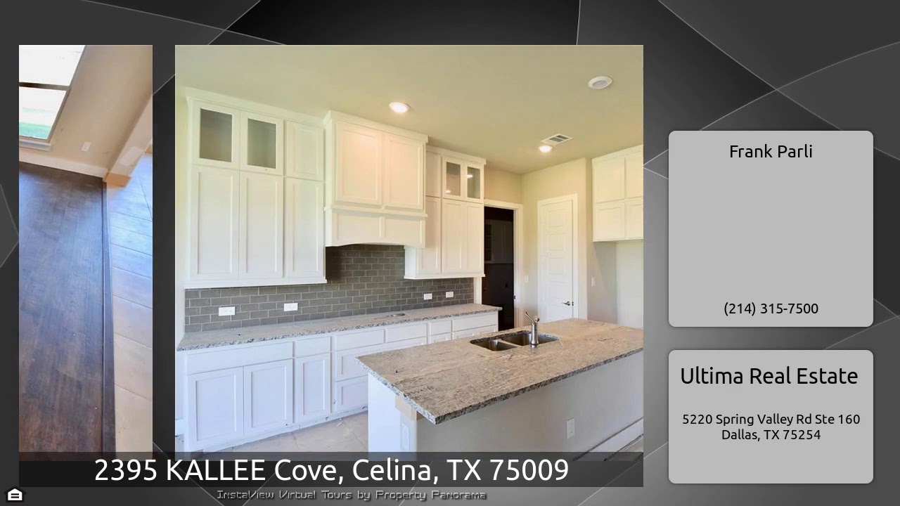 The Virtual Tour for the property at 2395 KALLEE Cove, Celina, TX 75009 listed for $479,000: Other homes for sale by Frank Parli of Ultima Real Estate: Brand New ONE STORY on 1 acre in Celina No city taxes! Beautiful brick and stone combination. Fantastic layout features Formal Dining with 12' ceiling, large Study with French Doors, HUGE Family Room with 12' ceiling, 20' x 14' Master Bedroom with 12' ceiling and HUGE closet, great Kitchen with Custom Cabinets and granite tops, 3 large bedrooms, and HUGE 19' x 14' Game Room! Hardwood floors in Entry, Study, Formal Dining, Family Room. …