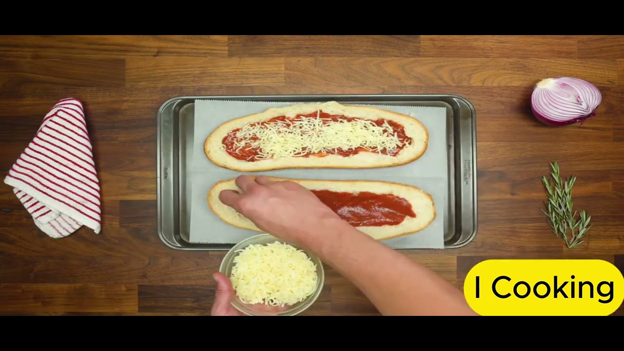 To begin, we start by carefully slicing the French bread lengthwise, creating two halves that will serve as our pizza crusts. Then, we generously spread a tangy tomato sauce across the surface, allowing it to soak into the bread’s porous texture, enhancing the overall taste.