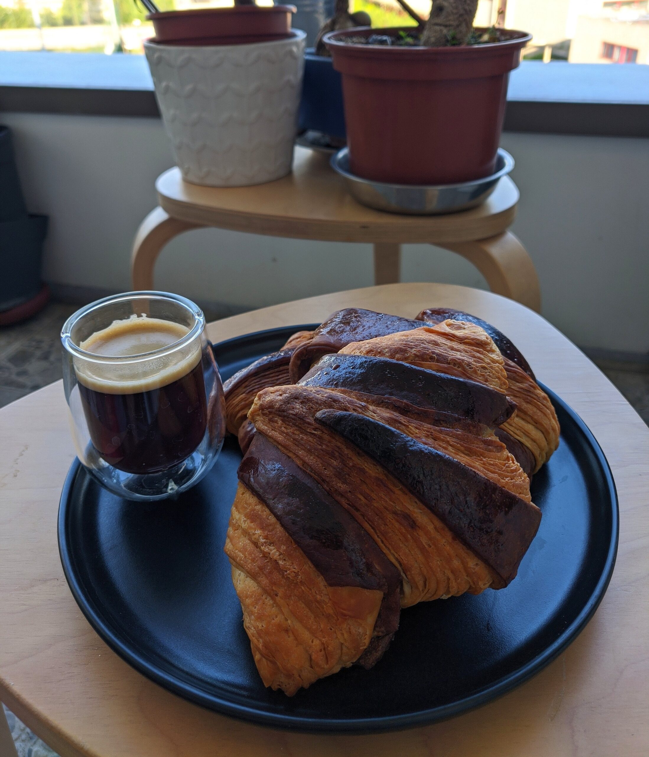 Je cherchais à faire un truc sympa durant ce jour férié et j’ai eu pile poil la quantité nécessaire de beurre pour faire des croissants et des croissants bicolores (chocolat) !