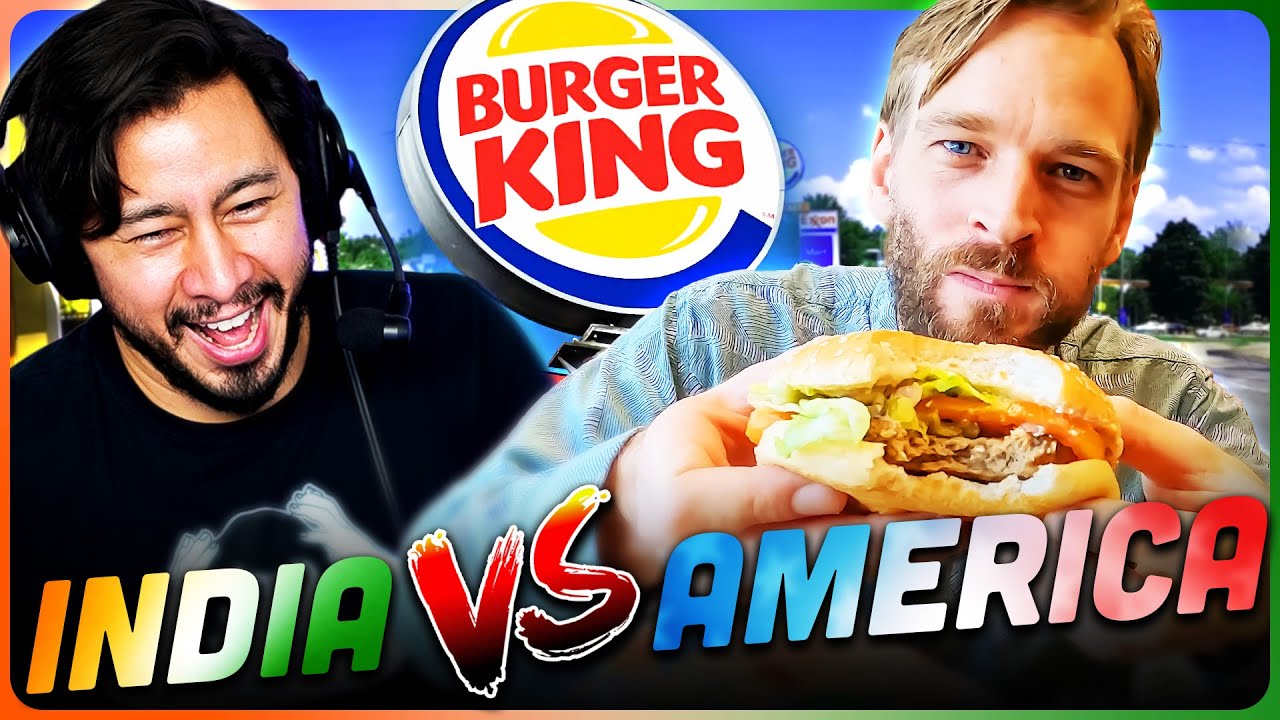 Jaby reacts to Karl Rock showing and tasting the difference between India’s Burger King & American’s Burger King.