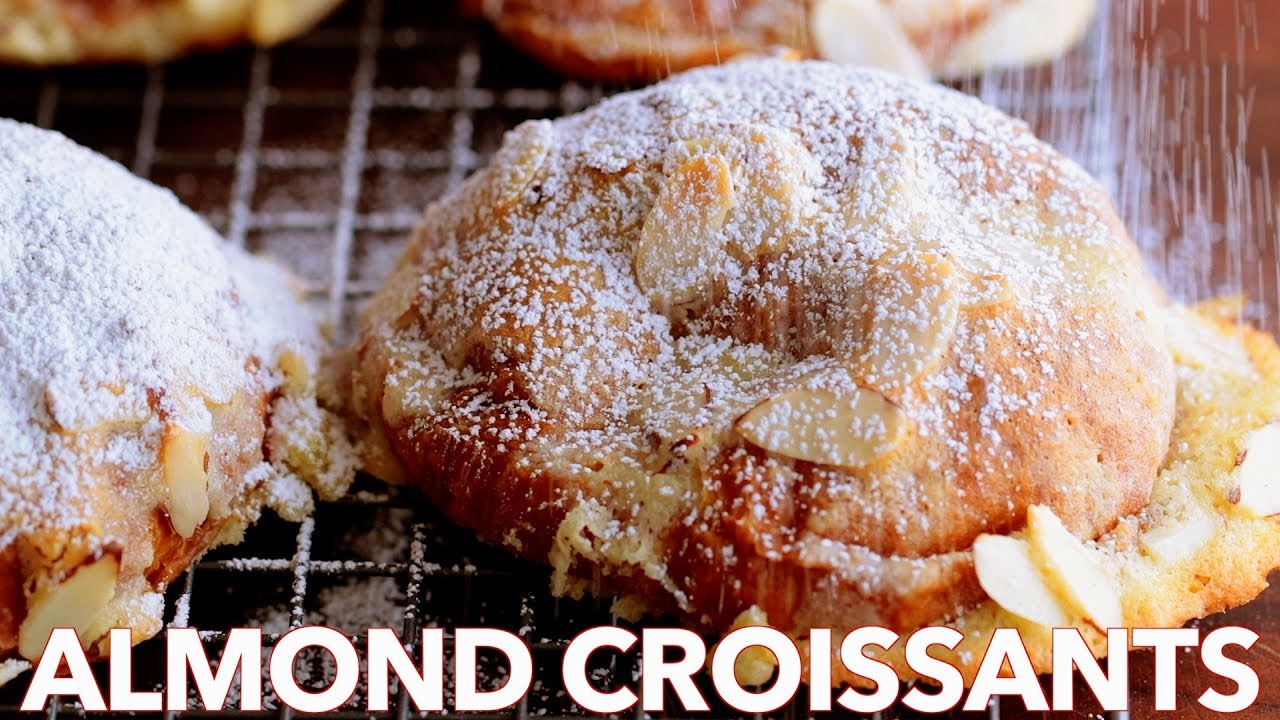 Learn how to make the most incredible almond croissant recipe, aka “Croissants aux Amandes”. These flaky golden croissants are filled and topped with almond cream and sliced almonds.