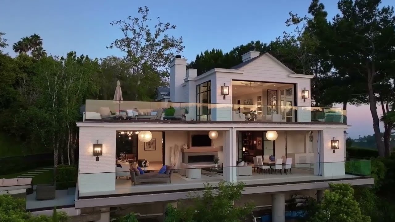 Situated in the prestigious hills of Bel Air sits this breathtaking property, offering an unparalleled combination of elegance and privacy with panoramic views. Cut into a soaring Ficas hedge alongside a 270′ long stone wall is a tall grand gate that opens to a meticulously landscaped yard featuring a beautiful water feature and welcoming you to your front door. Upon entering the meticulously renovated residence, you are immediately struck by the abundance of natural light that floods the open living spaces. The interior boasts exquisite craftsmanship, high ceilings, and expansive floor-to-ceiling doors and windows that perfectly frame the breathtaking vistas. The spacious living room is an entertainer’s dream, featuring a wood burning fireplace and sumptuous bar with seamless integration to the outdoor living areas. The gourmet Waterworks kitchen is a culinary enthusiast’s delight, equipped with top-of-the-line appliances, sleek cabinetry, and a generous island for culinary creations and casual dining. The primary suite is a private oasis, offering a serene retreat from the outside world. It features two en-suite bathrooms, one with walk in shower and soaking tub alongside French doors opening to a private juliette balcony. The other, a steam shower with door opening to a private balcony with more wide open vistas and stunning sunsets. Additionally, the suite offers a spacious private balcony where you can unwind and enjoy the tranquil, spectacular canyon views to the distant snowcapped San Gabriel mountains. The lush backyard hosts a generous sized pool, spa and built-in BBQ. Additionally, the home underwent a 4-year renovation and is equipped with smart home technology, ensuring comfort and convenience at your fingertips. Whether you are hosting an elegant soiree or simply seeking a peaceful sanctuary, 1260 Bel Air Rd provides the perfect setting.