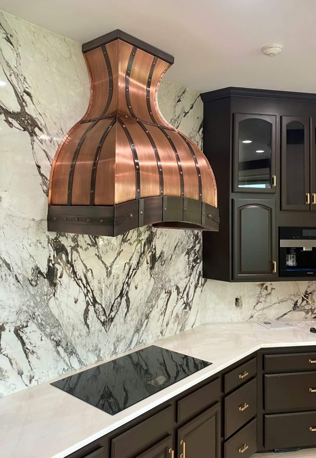 It certainly is nice, but it looks odd in this kitchen. Nothing else is copper, or even complements the copper or the style of the hood. It looks to me like someone said “Hey, I’ll give you a great deal on this copper hood!”