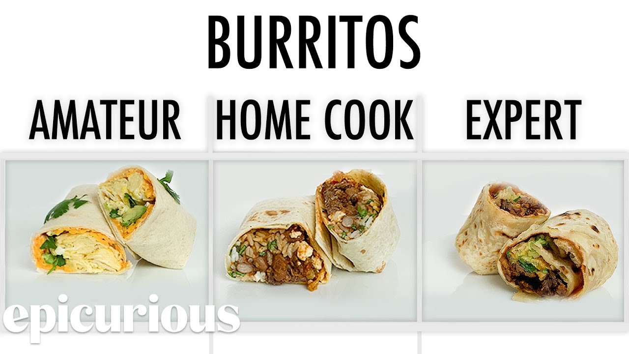 We challenged chefs of three different skill levels – an amateur, a home cook, and a professional – to make us a burrito. After each of them had loaded up and rolled their offerings, we asked a food scientist to review their work. Which one would you eat first?