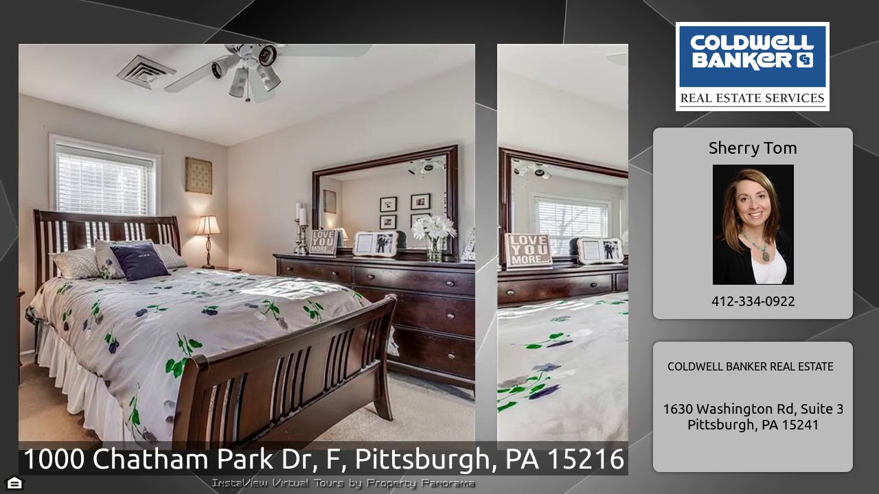 The Virtual Tour for the property at 1000 Chatham Park Dr, F, Pittsburgh, PA 15216 listed for $132,500: Other homes for sale by Sherry Tom of COLDWELL BANKER REAL ESTATE: Welcome to one of the best maintained 3-bedroom, 2 full bath homes in the highly desirable King’s Grant community. Open/flexible floor plan where the 3rd bedroom could be used as an extension to the family room, dining room, or office/den. The family room even has French doors leading to the balcony. The kitchen with granite countertops has tons of cabinets and overlooks the family room and dining area. The master bedroom …