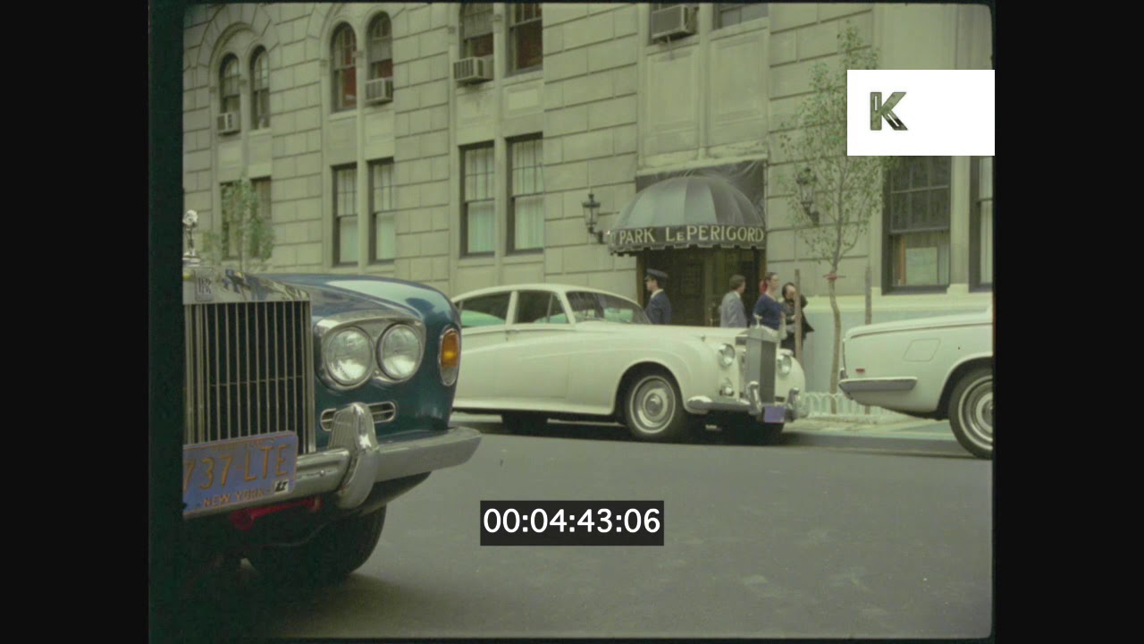 1980s Rolls Royce Outside Luxury Hotel, New York, 35mm from the Kinolibrary Archive Film Collections. To order the clip clean and high res for your commercial project or to find out more visit Available in 4K. Clip ref CHX1617