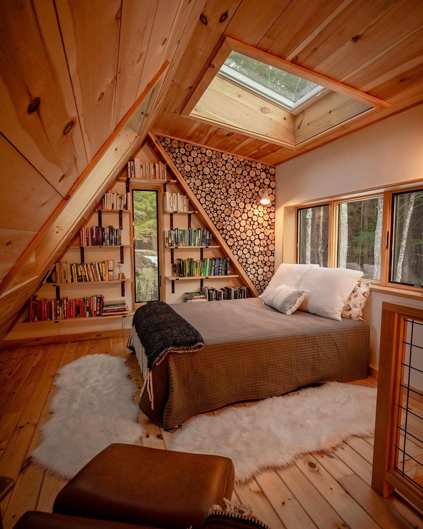 Cabin bedroom with a skylight, Freeport, Cumberland County, Maine [1440×1800]