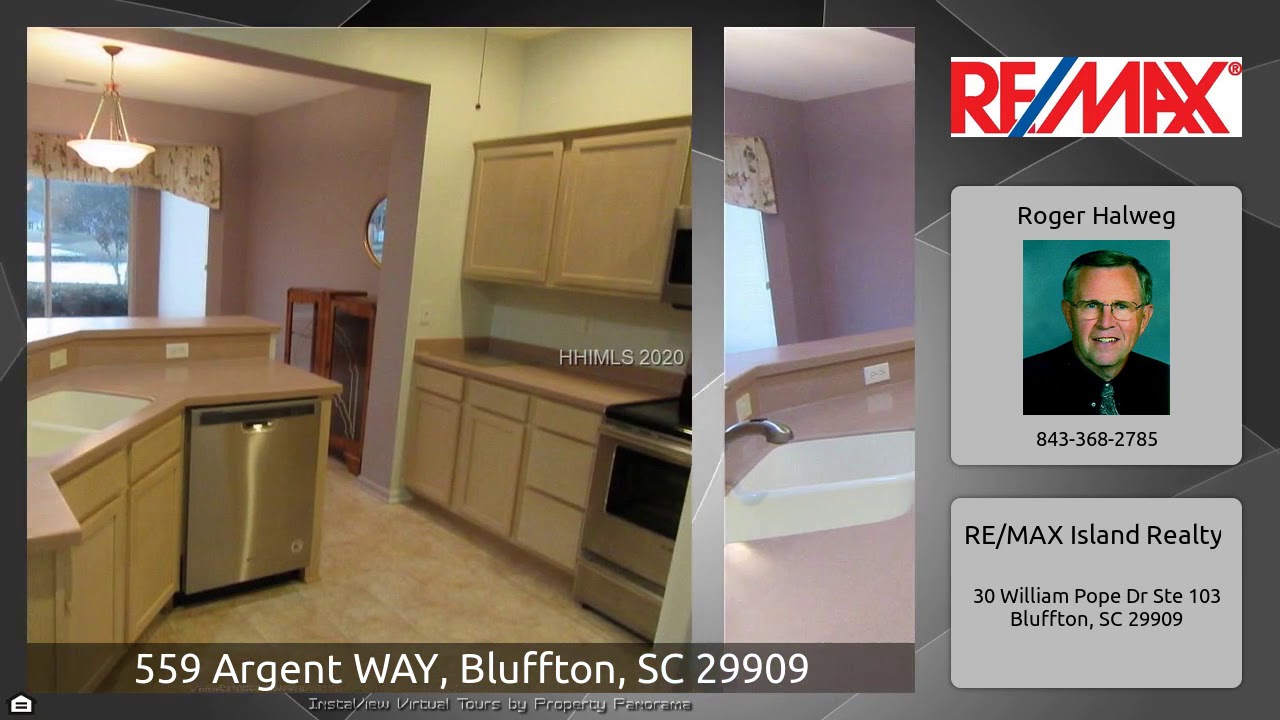 The Virtual Tour for the property at 559 Argent WAY, Bluffton, SC 29909 listed for $284,000: Other homes for sale by Roger Halweg of RE/MAX Island Realty: SUN CITY, Jefferson model on Beautiful Lagoon Lot, 2Br,2BA, Den/office, Sun Room, Tile & plank flooring, Smooth Ceilings, Bay windows, Kitchen w/Corian counters & S/S appliances, BK bar, Large pantry, Dining w/Bay, Office w/French Drs, Great Room, Tiled Sun Room, Lg Mstr. Bedr w/Bay & walkin closet, Mstr Bath w/double raised vanity & Marble shower, Guest Bedr w/full bath, Laundry Rm w/cabinets & utility sink, Newer Roof & HVAC, Front …