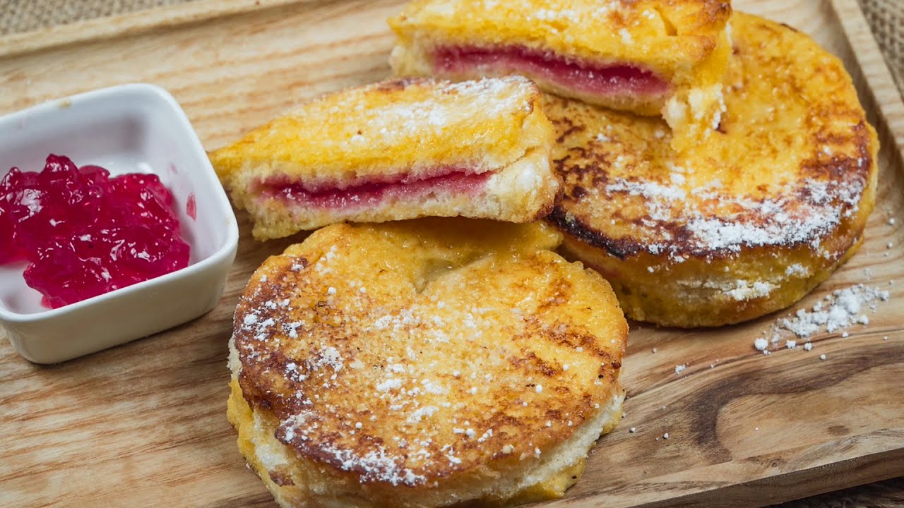 Jam Jelly Doughnut French Toast really is ridiculously easy to make. You simply make jam sandwiches out of rounds cut out from ordinary white bread, dip it in an egg mixture, cook until golden then dust with sugar. The only thing to remember is to make sure you don’t spread the jam all the way to the edge because otherwise when you are handling it the jam might ooze out.