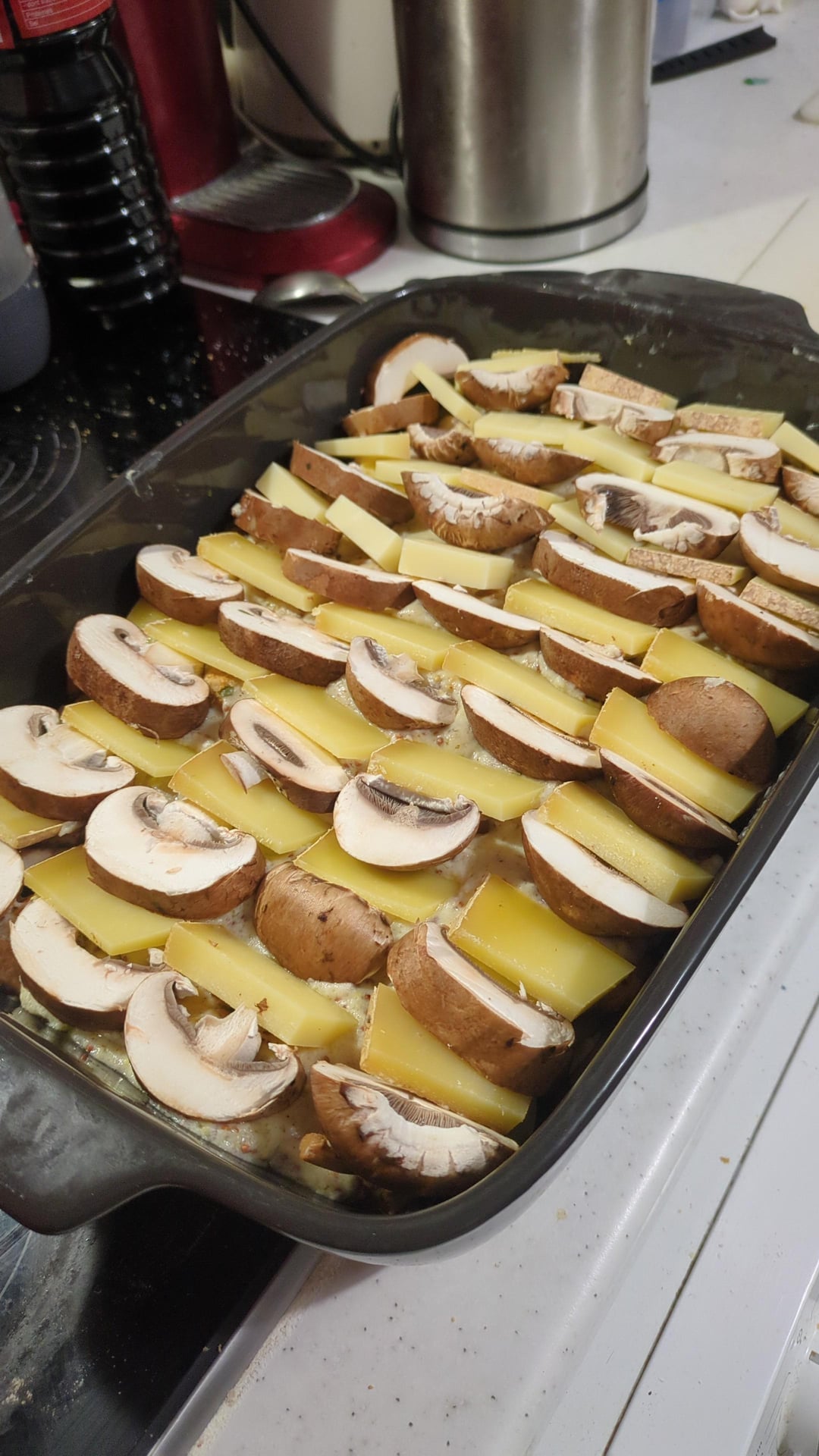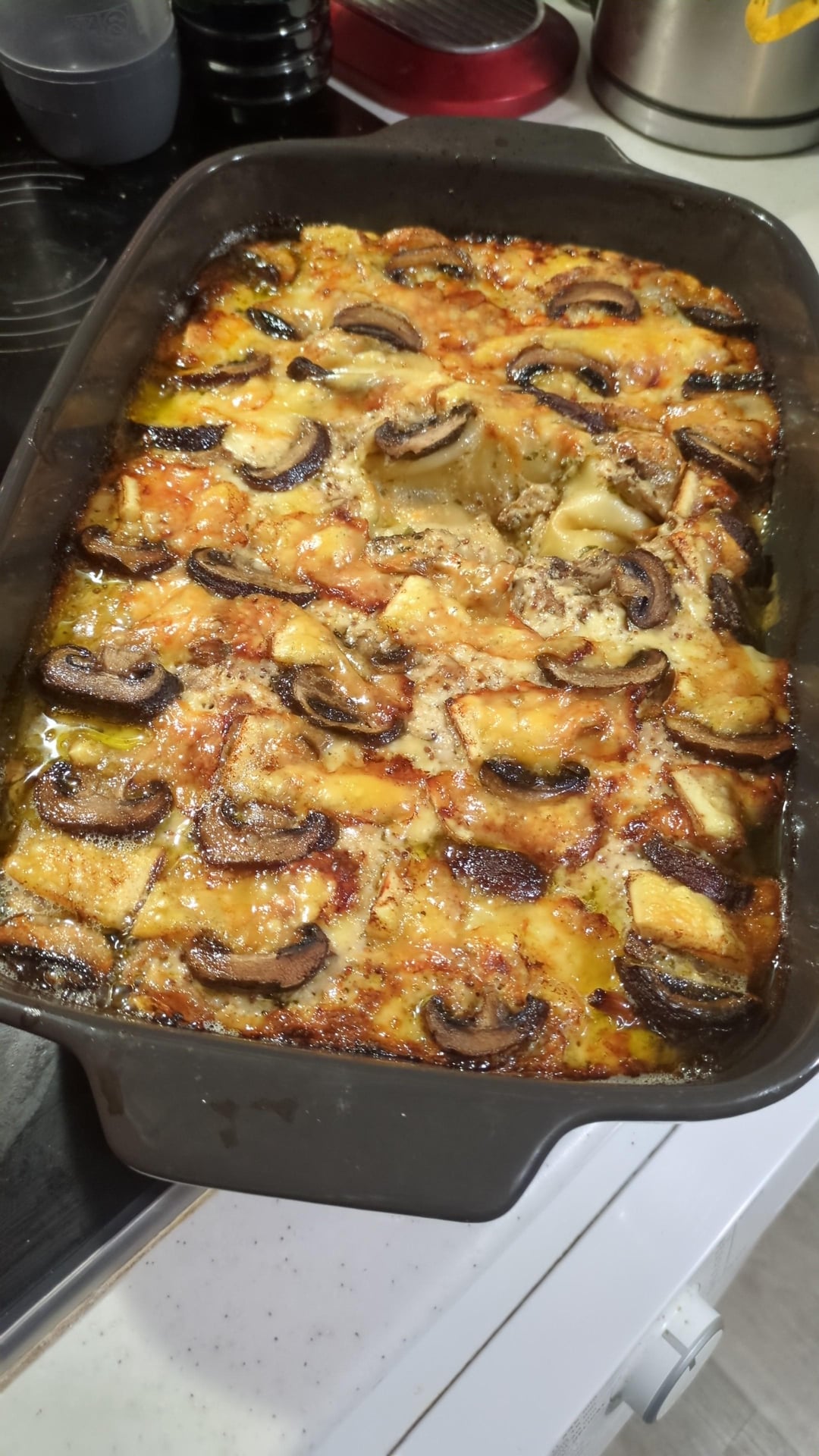 Recette de Diego Alary 😋 béchamelle au comté et à la moutarde à l’ancienne, couches de lasagnes avec mélange poêlée de champignons marrons et girolles, couche finale avec champignons marrons (je connais pas leur nom 🥲) et morceaux de comté affiné 15 mois 🤤🧀🍄