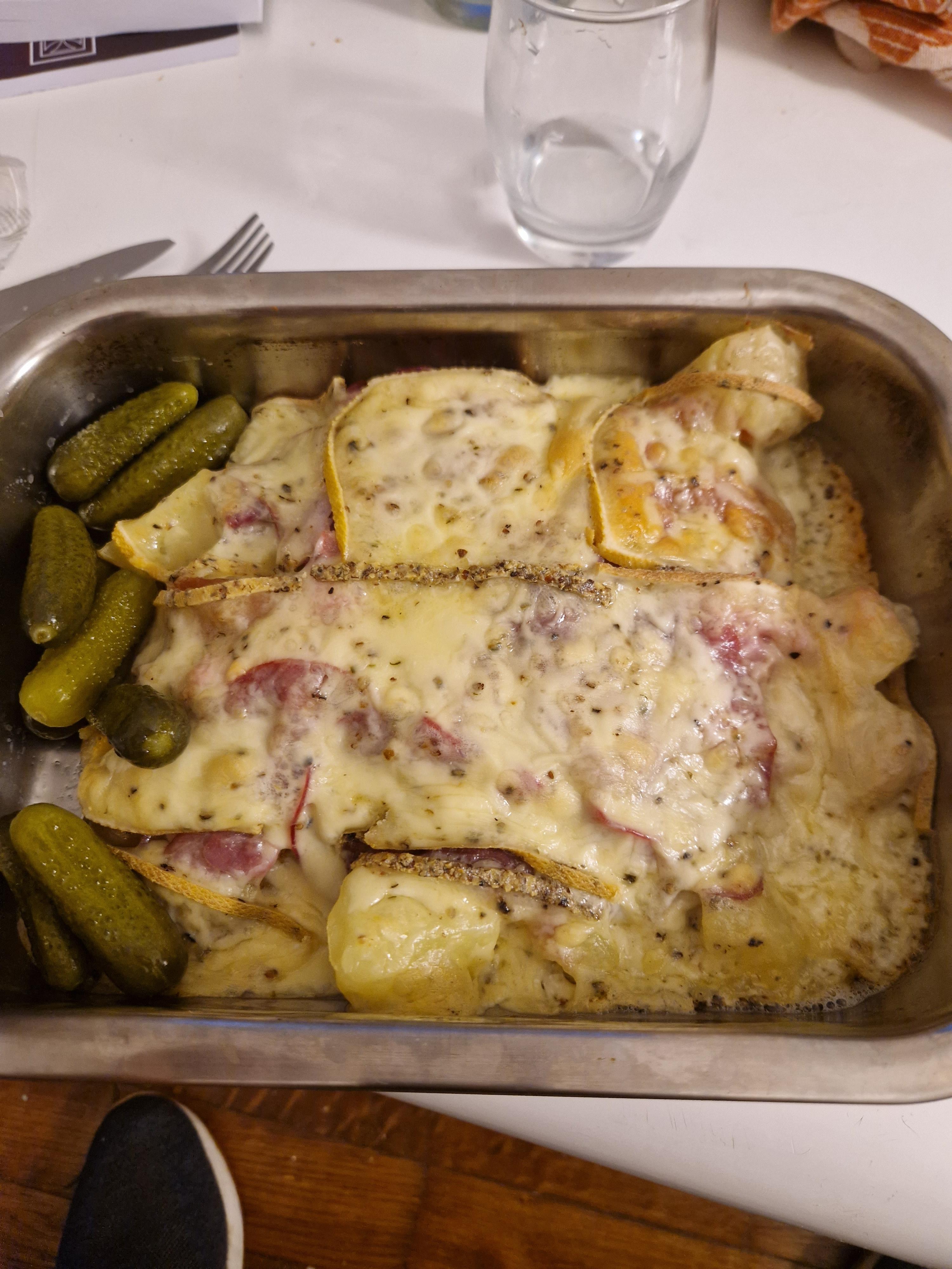 Madame, monsieur, la racliflette by Patient-Molasses-954 Bonne BouffeCuisine d'ici et d'ailleurs 7 Comments olb4t4R 2 years ago [bizarre](https://youtu.be/_-Ddug8XuCM?si=2wynR8u8Lq_-SVIe) mysteriousman38 2 years ago De loin une bien meilleure idée que la tartiflette sans goût rljj_zero 2 years ago Tu peux préciser ce qu’il y a là-dedans ?C’est très appétissant ! (*même si mon diététicien s’en étranglerait certainement*…) Ok_Act_8573 2 years ago ca ressemble plus a une tarticlette Agitated_Turnip_62 2 years ago C’est juste une tartiflette avec dés cornichon qui non aucune raison d’exister dans une recette pareille Nutriscore123 2 years ago Waw Je suis émue NicolasV39 2 years ago Et donc la charcuterie a chauffé avec le fromage ?! Quelle hérésie !!!Write A CommentYou must be logged in to post a comment.