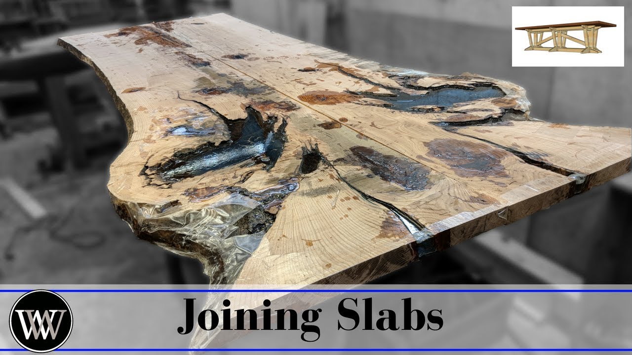 The Day has come to join together the two slabs and make one table top. the two slabs of oak are book matched and around 200 lb each. it was a lot of fun figuring out how to join these two together.