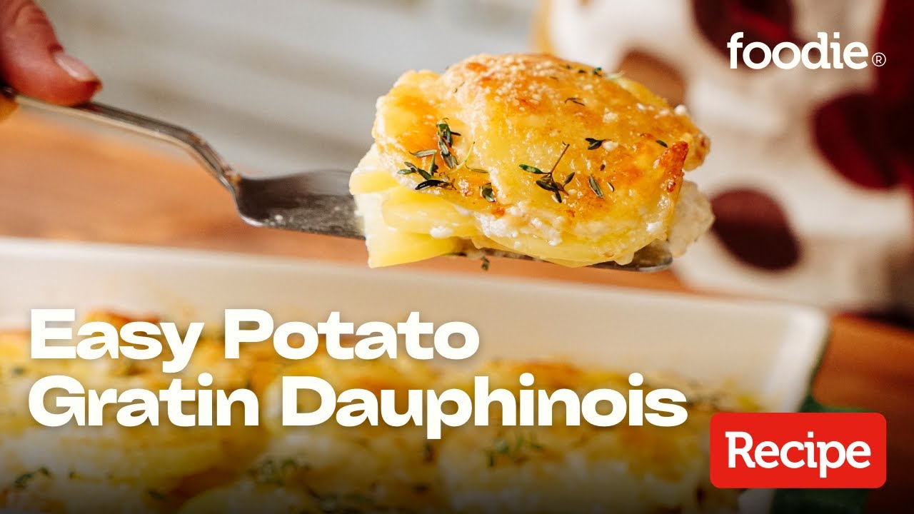Learn how to make an irresistible creamy potato gratin dauphinois with this easy recipe! This French potato bake is made by slicing potatoes thinly, layering them in a cheesy garlic cream sauce, and baking until tender and golden brown. It’s the ultimate comfort food side dish for any holiday meal or occasion. This recipe tutorial brought to you by the Foodie Team will show you simple steps for potato gratin success.