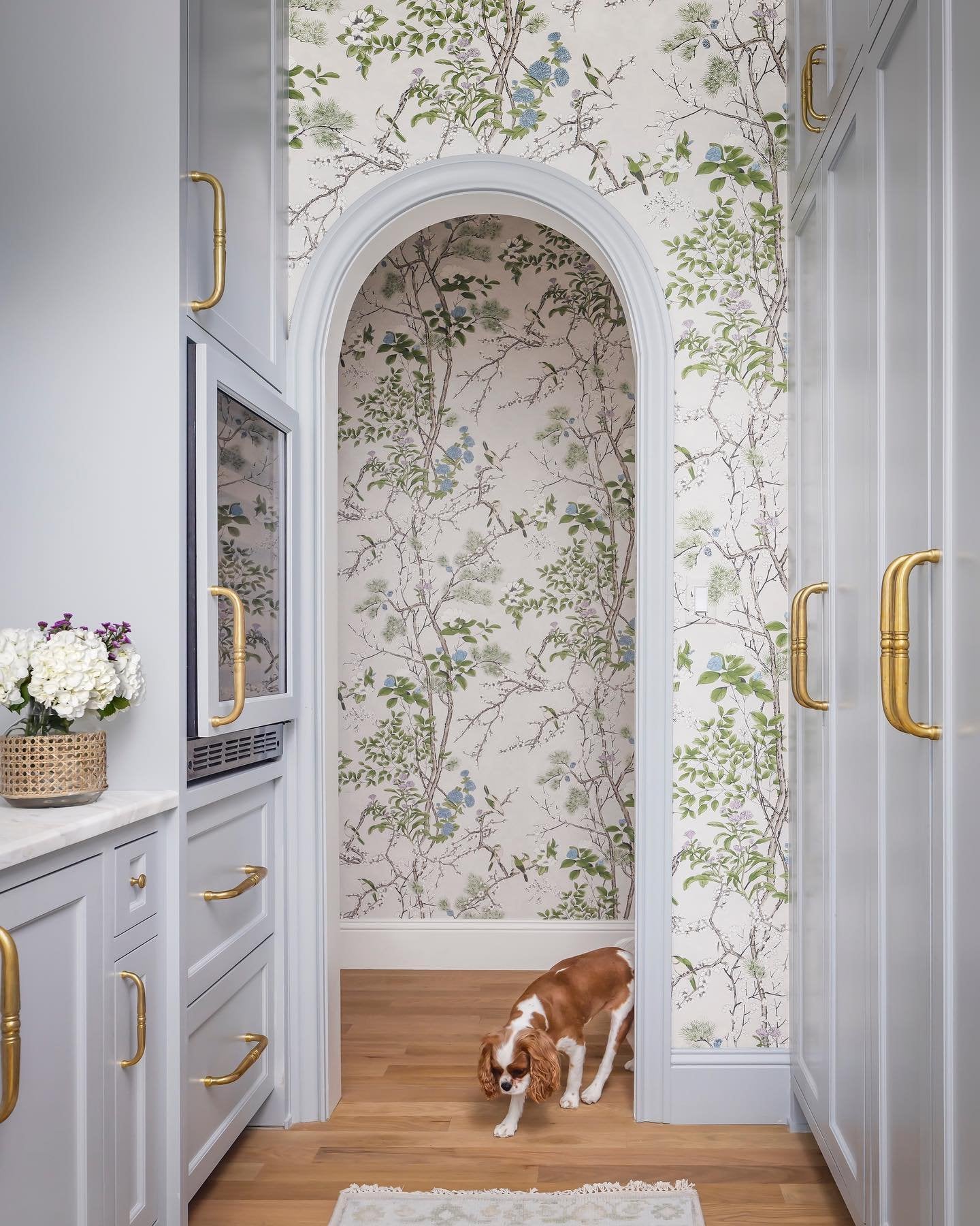 Butler’s pantry with floral wallpaper in a renovated Dallas home, Texas [1440×1800]by ManiaforBeatles Room Porn 12 Comments ManiaforBeatles 2 years ago [Instagram source](https://www.instagram.com/p/CzgrXiorjH6/). There are three more pics from the link. [Another pic of the kitchen from the designer’s IG account](https://www.instagram.com/p/CzudMToJCSr/). [There is an article about the home on D Magazine, but I don’t think I can access it on the internet](https://www.instagram.com/p/CzJ3d-AJAQo/). suoinguon 2 years ago [home. Who knew a small space could be so charming?](https://cliprecaps.com/read/?v=H_hGhDqemH4&pp=ygU7QnV0bGVyIHMgcGFudHJ5IHdpdGggZmxvcmFsIHdhbGxwYXBlciBpbiBhIHJlbm92YXRlZCBEYWxsYXM%3D) Sly3n 2 years ago Too white fit my tastes. I think I would prefer the woodwork and cabinets to be wood-toned. Felixir-the-Cat 2 years ago That’s the size of my kitchen! xPrim3xSusp3ctx 2 years ago That’s the exact kind of dog I’d expect to see here Shinobipizza 2 years ago I love King Charels Spaniels. Pancakemeal 2 years ago Wow! Does anybody know where the wallpaper is from? Curl-the-Curl 2 years ago Looks like an AD Home Video SpiritualAd8998 2 years ago My butler insists on Gucci wallpaper. RoRoRicardo 2 years ago That gray lavender color is so nice. pegasusgoals 2 years ago I love a galley kitchen, but those brass handles are huge, I would bump into them constantly. They look very sturdy though armandoL27 2 years ago Steve levitan has that dog lol. Im not sure of the breed, but it was a sweet dogWrite A CommentYou must be logged in to post a comment.