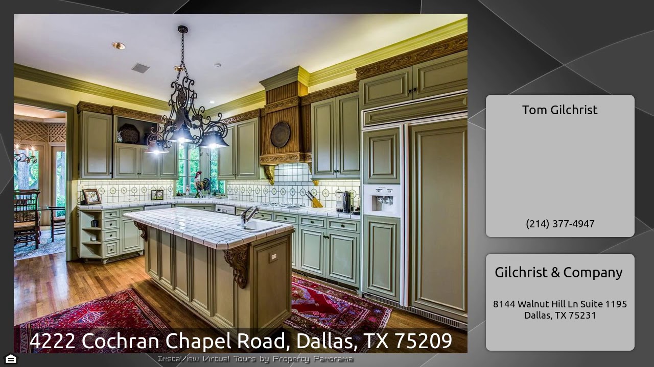 The Virtual Tour for the property at 4222 Cochran Chapel Road, Dallas, TX 75209 listed for $3,995,000: Other homes for sale by Tom Gilchrist of Gilchrist & Company: Enchanting gated French Chateau oasis designed by Richard Drummond Davis is nestled among the towering shade trees peppered over 2 plus acres. Bachman Creek runs inside the south boundary. Inviting tiled foyer celebrates a grand staircase and draws you through multiple arches into the main room and outer terrace.Dining room is ideal for elegant parties.First floor master suite overlooks a spectacular pastoral view and adjoins …