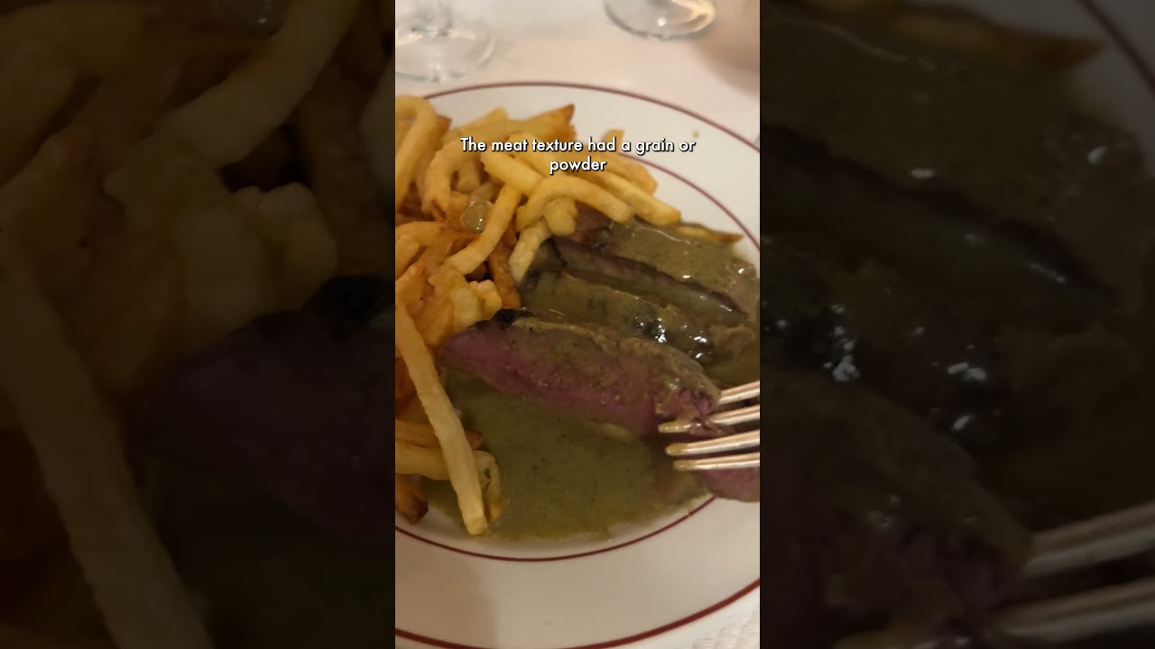 in Paris. I arrived at opening and the line was already pretty long. Luckily the wait was only around 40 minutes. Once I sat inside I noticed there wasn’t much personal room. You’ll be able to hear your neighbor’s conversations pretty easily. The fries had a nice crisp to it. I was not a fan of the steak. The meat texture had a grain or powder texture to it that i’ve never tasted before. Once you’re done with your first round, they bring more steak and fries for you. France is known for the exceptional wine but their house red wine was not pleasant. Overall it cost 29 euros for a salad and first course. I don’t think it was worth the wait or price.