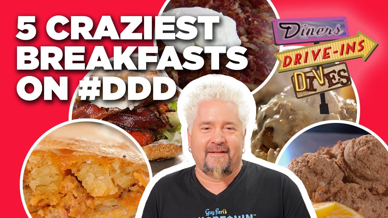 TOP 5 Most-Insane Breakfasts in #DDD Video History with Guy Fieri | Food Network