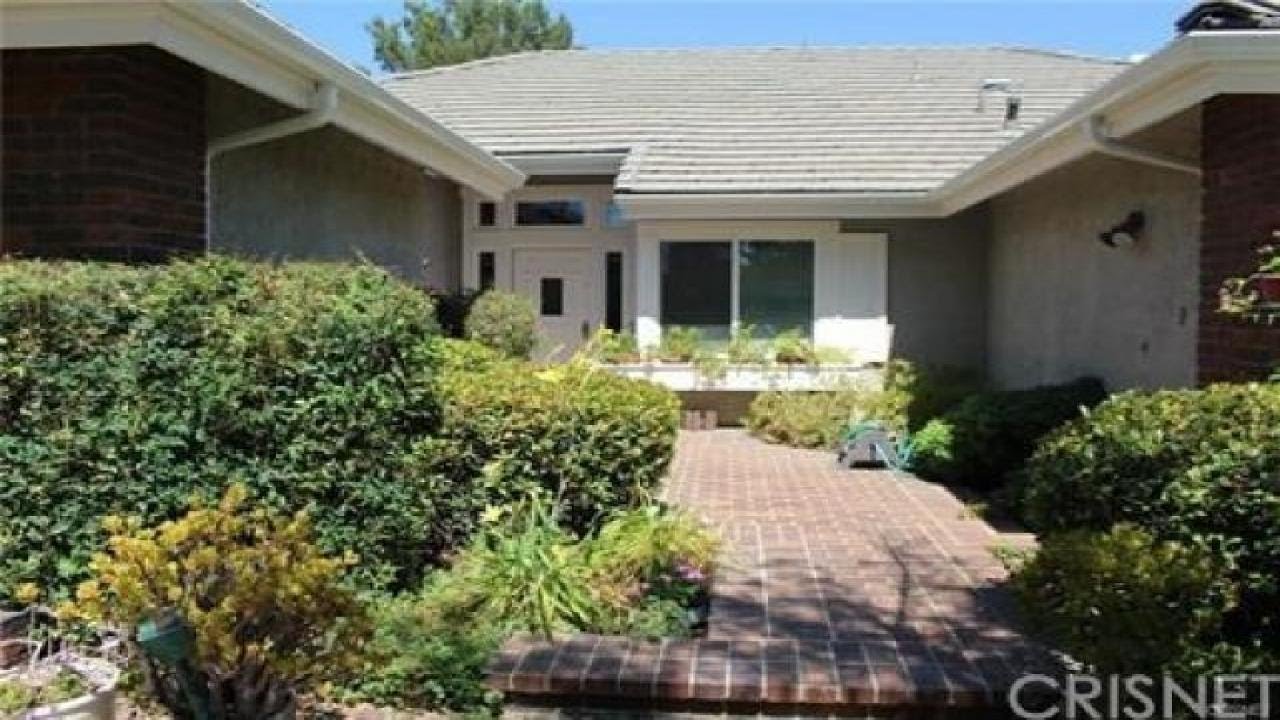 Single Story, with private gated entry within the highly esteemed “Windemere” at the Valencia Summit. Brick walkways with an impressive court-yard entry. Entry/foyer has high ceilings that extend into the formal living room with french doors that lead to & provide views to the rear yard and the tranquil swimming pool and spa. The formal dining room/family room shares a dual-sided fireplace and has french door views to the rear yard. The updated kitchen has stainless appliances, tile back splash, solid surface counter tops and dine-in space, that also has french door entry to the rear yard swimming pool and adjacent built-in BBQ/cooking area. The kitchen has a pass-through opening and view to the family room/dining room, appointed with a fireplace and wet bar amenity. The 4 bedrooms and 4 bathrooms are all generously proportioned The spacious den boasts high ceilings & french doors that provide lots of natural light. The largest en-suite bedroom has a separate retreat w/fireplace, built-in book case, walk in closet and access to the spa/pool and gardens. The lush green rear yard has fruit trees and a foliage lined fence for added privacy. Newer dual pane windows have energy conserving glass, dual pane French doors & led recessed lighting also add to this homes energy efficiency. Attic fan system helps keep this home cool, along with the newer dual zone A/C units. The swimming pool has newer pebble tech surfacing. 3 car parking garage with newer roll-up doors. A must see home!