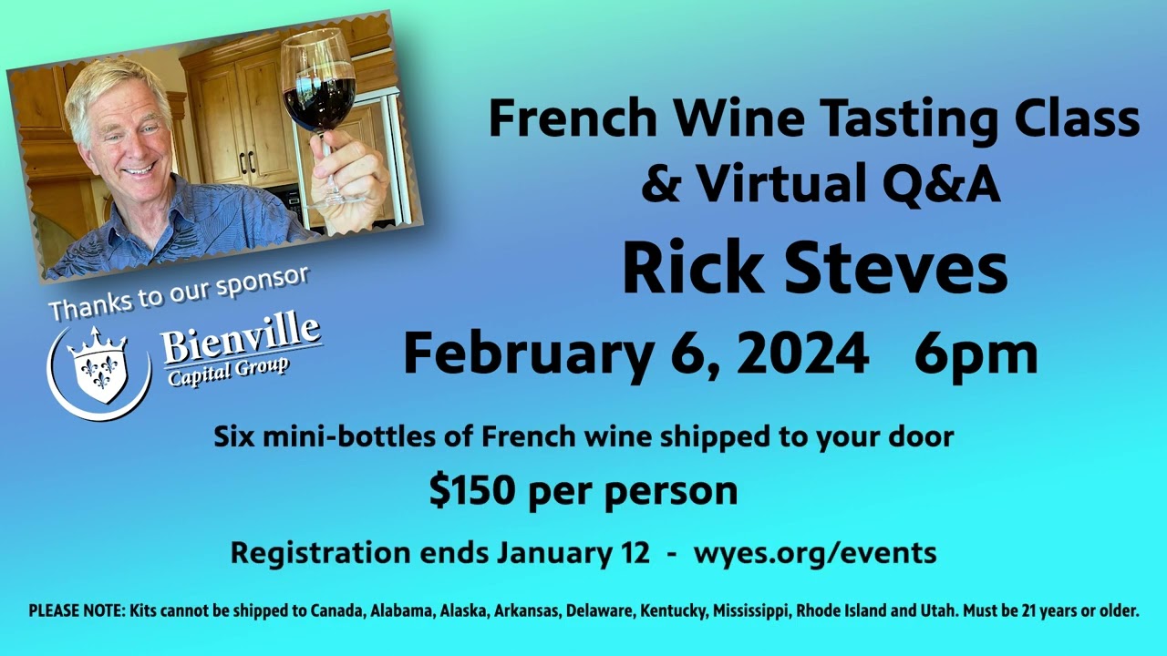 – Access to the virtual tasting led by a sommelier alongside Rick Steves