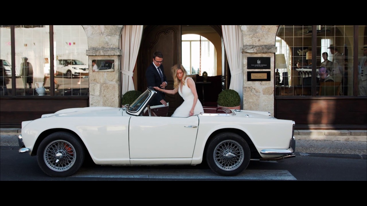 The morning started as they prepared in a famous Provencal hotel. An antique car arrived to pick up the bride as they rode top down to the ceremony location.