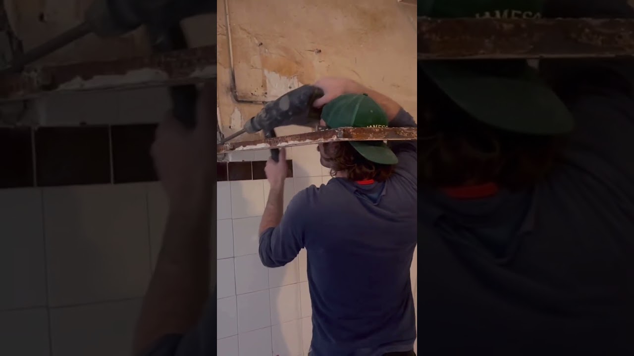 Thomas and I tore down the old kitchen hood at the Chateau and then removed the old tiles before finding the old doorway the plasterer made into a niche in the wall. So excited for the floors to come next!