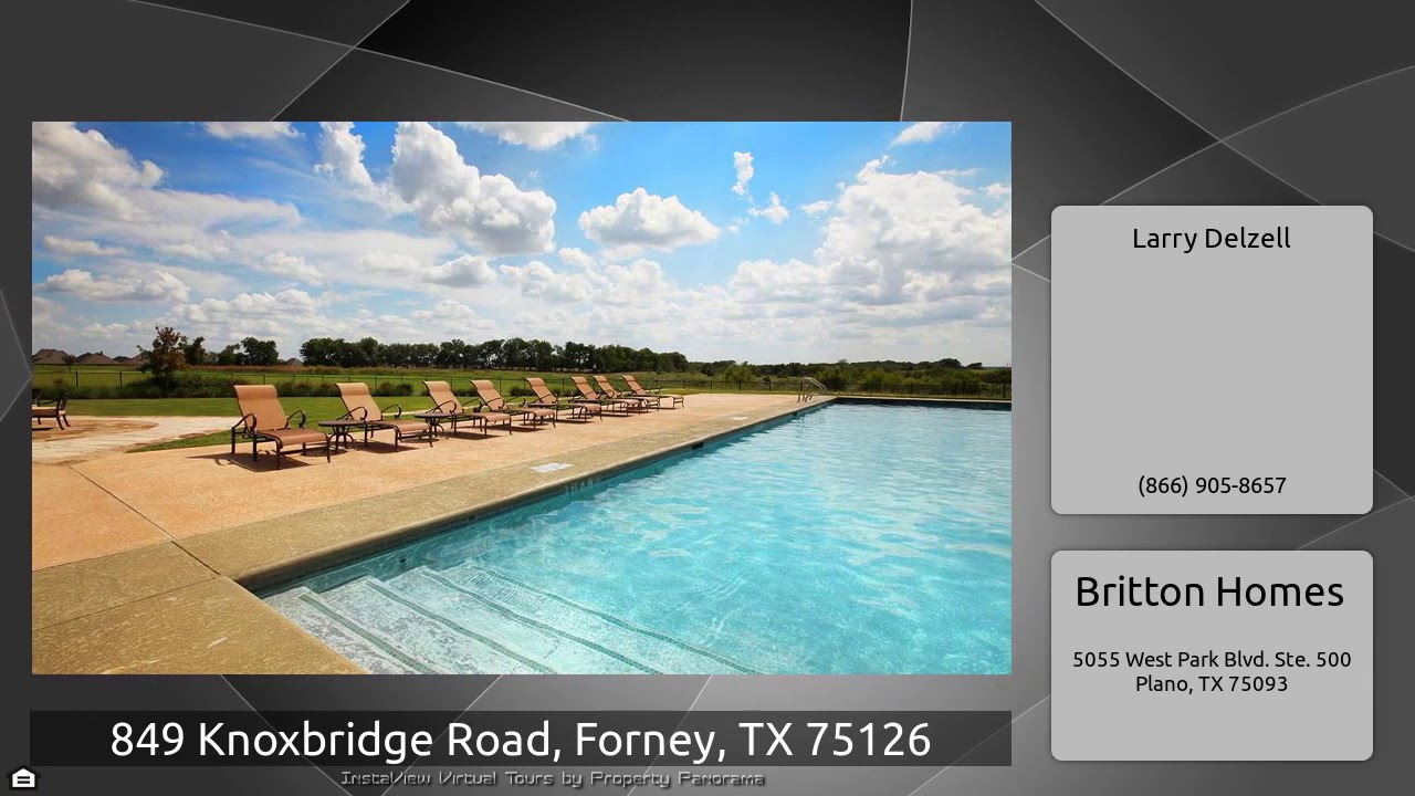 The Virtual Tour for the property at 849 Knoxbridge Road, Forney, TX 75126 listed for $359,900: Other homes for sale by Larry Delzell of Britton Homes: PERRY HOMES NEW CONSTRUCTION – Library with French doors set at entry with 12-foot ceiling. Coffered 12-foot ceiling highlights extended entry. Open kitchen offers corner walk-in pantry and inviting island with built-in seating space. Spacious dining area flows into open family room with ceramic tile floor, wall of windows and cast stone fireplace. Private master suite includes bedroom with wall of windows. Double doors lead to master bath …