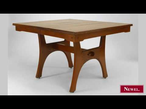 http://www.newel.com/PreviewImage.aspx?ItemID=14745 – Newel.com: Antique Arts & Crafts (French) oak dining table with trestle form base and apron with a 13½” wide leaf (att: Leon Jallot) (matching 6 chairs: Inv. #060127) (English, Arts&Crafts, table, dining table, oak) (Newel Art and Antiques, New York City)