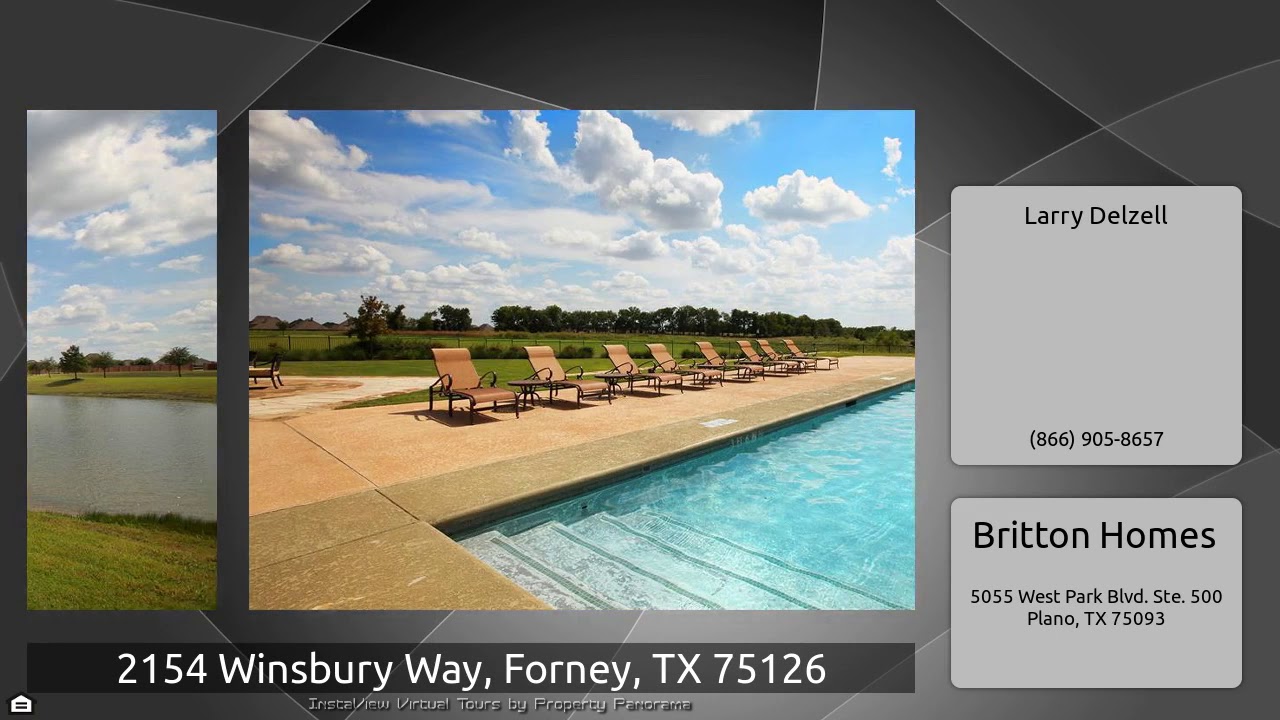 The Virtual Tour for the property at 2154 Winsbury Way, Forney, TX 75126 listed for $289,900: Other homes for sale by Larry Delzell of Britton Homes: PERRY HOMES NEW CONSTRUCTION! Entry welcomes with 11-foot ceiling rounds to open kitchen, dining area and family room. Ceramic tile floors flow throughout. Inviting kitchen offers corner walk-in pantry and generous island with built-in seating space. Spacious master suite. Double doors lead to master bath with dual vanities, separate glass-enclosed shower and large walk-in closet. Library with glass French doors set at back entrance. All …