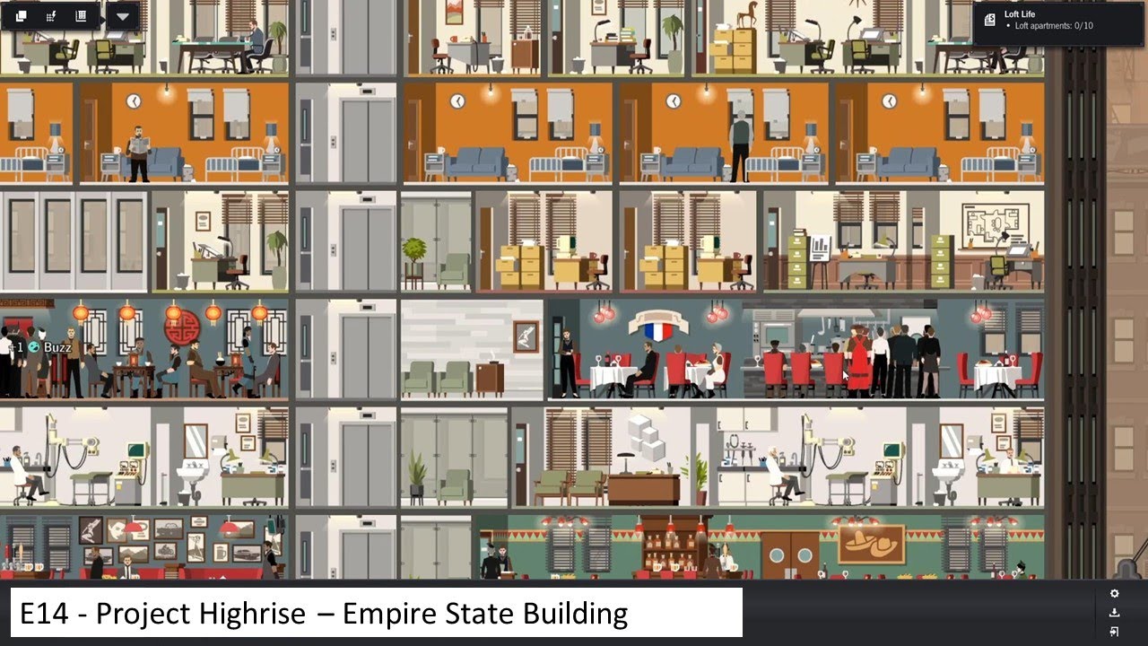 In this episode we sign and immediately complete the WPA contract. We added a French gourmet restaurant and some French type art (how’s that for stereotyping? Hahaha!). We added a Japanese gourmet restaurant and some Japanese type art (how’s that for continuing stereotyping? Hahaha!). We added more floors of course. But, this time we tried out the skybridge elements to see that it is about. We signed the Loft Living contract and begin to put the needed support services in place.