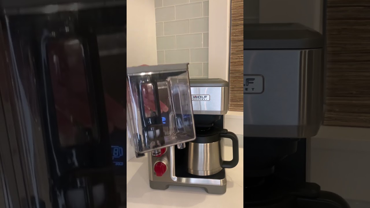 Hi there so today we have the stainless steel coffee maker by wolf Gourmet this is a programmable coffee maker so it’s super convenient for busy mornings um it’s a very big coffee po so definitely make sure that you have the space for it in your kitchen but with that being said