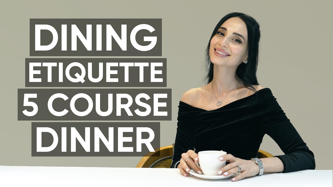 Fine Dining Etiquette: A Five Course Meal And How To Master Table Manners | In this video, I will show you all the etiquette rules of fine dining. You will see a table set up for a five course dinner menu, which utensils to expect, how to handle the napkin as well as how to eat a salad, broth soup, fish, meat and two different kinds of desserts. You will see a variety of cutlery and glasses and how to properly hold them.