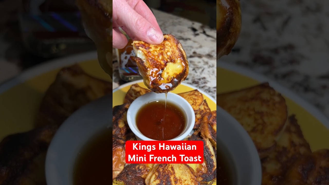 Need a brunch idea? How about mini french toast bites. This brunch idea was inspired by our love of Kings Hawiian buns. Once we started to cut them I saw small pieces of bread that would be great for a Sunday Brunch idea. Oh and we added some Runamok maple syrup that has edible sparkles to make this brunch recipe really stand out.