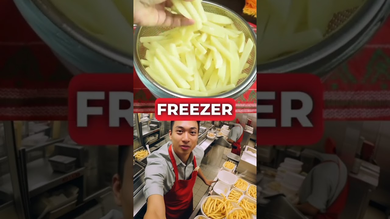 Water mixed with a teaspoon of salt and sugar put the bowl in the freezer for 15 minutes then take out your fries rinse them and dry them as much as possible now fry them the first time for 2 minutes put them on a paper towel then