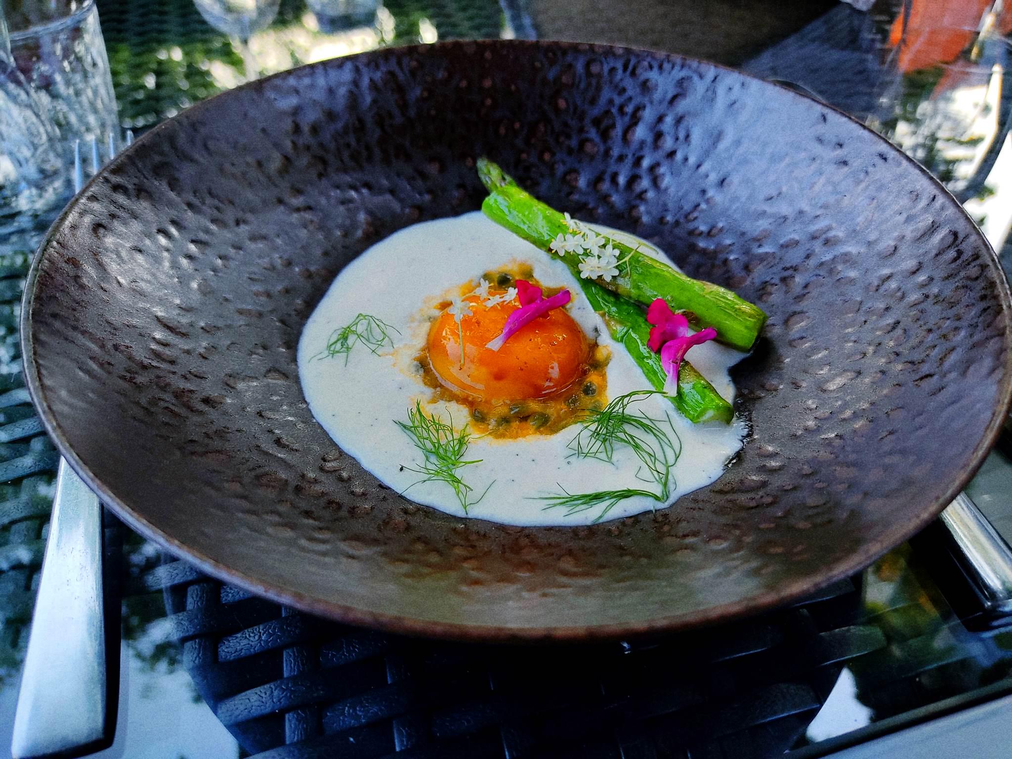Trompe l’œil (entrée de l’été dernier) : jaune d’œuf confit au soja, espuma chèvre/café, asperge grillée, et insert au fruit de la passionby freremamapizza Bonne BouffeCuisine d'ici et d'ailleursWrite A CommentYou must be logged in to post a comment.