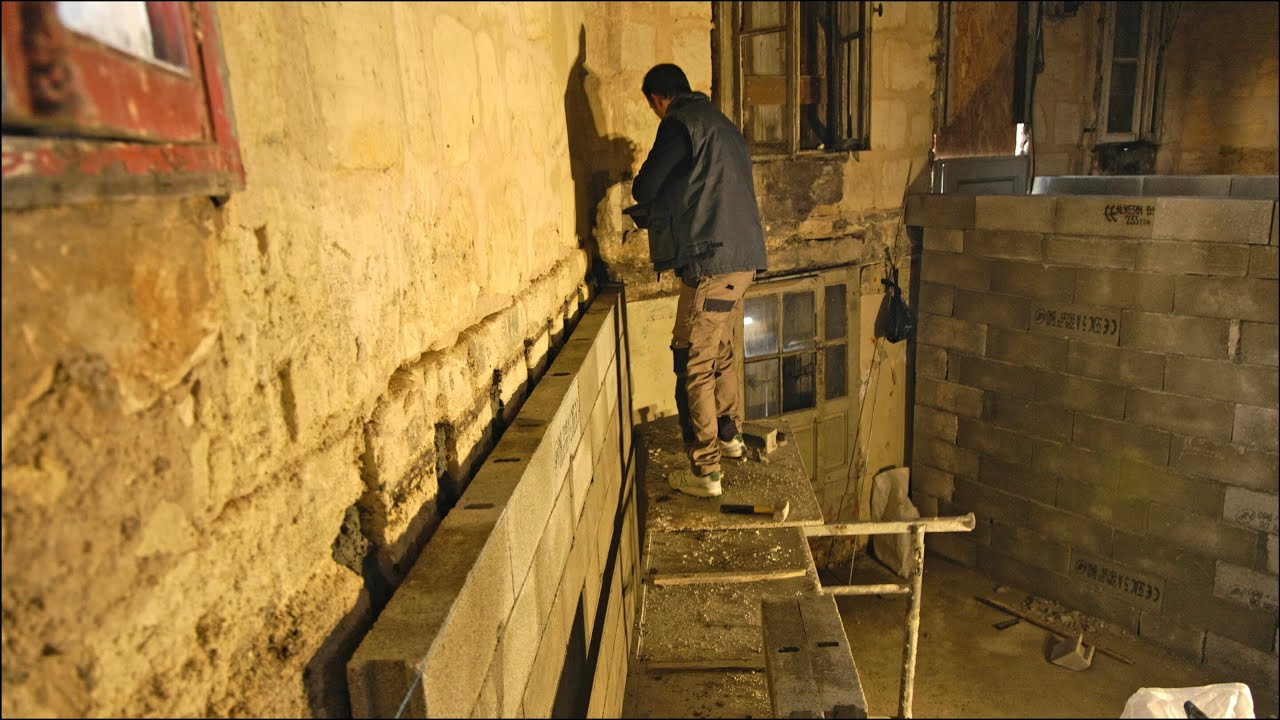 Both are underneath this metal girder and that they’ll all fall when I take the acros out well these are not cinder blocks they are a linal so there’s concrete metal in that lentil and this wood here is literally just there whilst I have the acros to hold those up Let