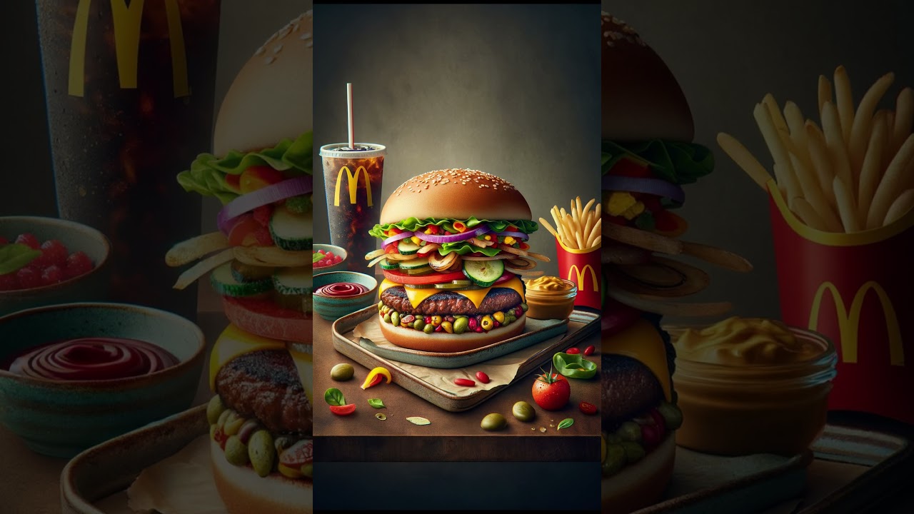 I asked AI to invent new menu items for fast foods part one McDonald’s the golden Gourmet twists damn these look like really condiment regular fries let’s look at the new burger the global fusion Deluxe wow this burger looks amazing but I can’t imagine how you could bite from