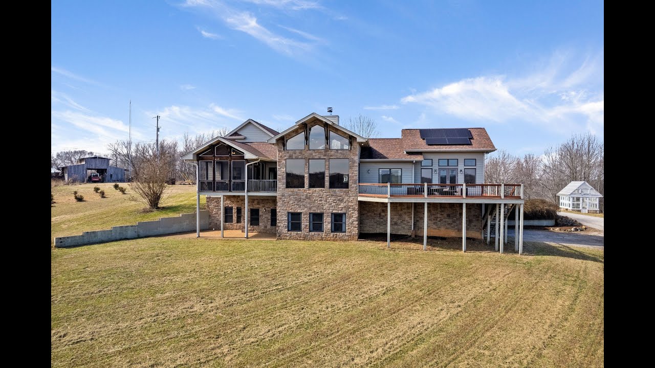Custom home and approx 23.96 acres within a 30-minute drive from downtown Nashville – panoramic views welcome you home. The great room’s wall of windows and the primary bedroom’s french doors beckon you to the expansive deck. Unleash your culinary creativity in the gourmet kitchen featuring a 5-burner+griddle gas range with double ovens, a walk-in pantry, and a spacious island with seating. From the kitchen, step into your covered, screened-in area of the deck – perfect for a sunrise breakfast. The finished walk-out basement provides space for entertainment and additional bedrooms/bathroom. Upstairs, you’ll find a loft and bonus room. Large closets/storage areas cater to your organizational needs. Sustainability focus with solar panels and 2 Tesla Powerwall battery systems. A 2-car attached garage + RV hookup on the main level plus a 1-car attached garage on the basement level. The property boasts a barn, greenhouse, 3 farm spigots, creek, and pond. Property in greenbelt.