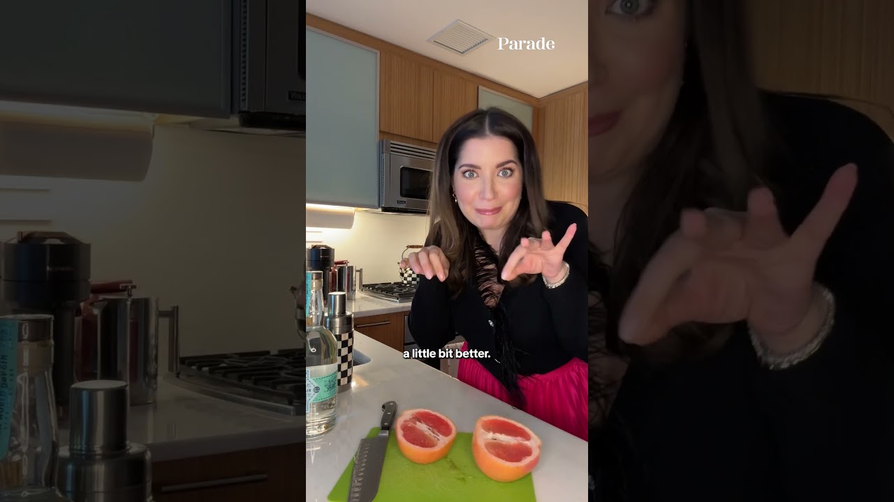 Eviscerated me for how I squeezed a grapefruit last time so we’re gonna try to do it a little bit better cut it into little sections and then try to squeeze it magic juiciest grapefruit of all time fill your Shaker with ice ounce and a half of fresh grapefruit juice half oz