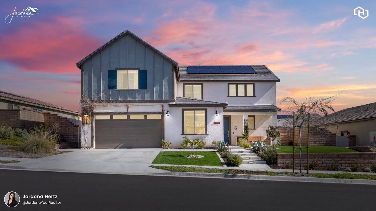 This one of a kind masterpiece is completely remodeled with high end touches making this 3400 sqft property a must have! The home is almost brand new, having been built in 2021 and featuring 5 bedrooms, 3 baths, an office and giant loft, on a cul-de-sac with solar! As you enter the property you are greeted by artificial turf, gorgeous drought tolerant landscaping, an extra wide driveway with access to a 3-car tandem garage. Inside the stunning home you will find high ceilings, recessed lighting, high baseboards, LVP floors throughout, and an open concept floor plan. The first floor features a giant Great Room boasting a custom olive-green shiplap fireplace featuring a floating mantel and sconce lighting, large windows allowing tons of natural light with bamboo shades, a dual slider and open to the gourmet kitchen and dining area. The kitchen is appointed with white quartz counters, eat-up island, stainless steel appliances, a double oven, farm sink, pot filler, convection microwave, pendant lighting, custom black chandelier, tons of storage, a massive walk-in closet, upgraded mudroom with a built-in hall tree, and access to the garage. Off the kitchen is a custom office boasting French doors, accent wall with woodworking, moody paint, and a custom bookshelf from floor to ceiling. The main floor also features a full bath boasting a single vanity and tub/shower combo. The main floor bedroom is very spacious with plush carpet, ceiling fan, and walk-in closet. The tall ceilings and gorgeous black chandelier lead the way up to the second story via an open slatted staircase with upgraded stair rails and LVP floors that drop you off into the large loft boasting custom cabinets with a wood counter top. The second-floor features 3 more secondary bedrooms, all spacious with carpet, 2 with standard closets and one with a walk-in closet. The large laundry room is appointed with a free-standing wash sink and storage. The master bedroom is massive with gorgeous views and attached bath boasting custom tile, separate sink areas, custom mirrors and lighting, free standing tub, honeycomb backsplash, black framed shower, and huge walk-in closet. The entertainers yard boasts a patio cover, artificial turf, built-in fire pit, above ground spa, trees that will mature for privacy and many entertaining areas. The community features pools, spas, sports courts, hiking & biking trails, skate park, elementary and middle school within walking distance, and between the 15 & 215 fwy. For more information Visit Our Site: www.jordonayourrealtor.com, to schedule a private showing call 714-865-6569.