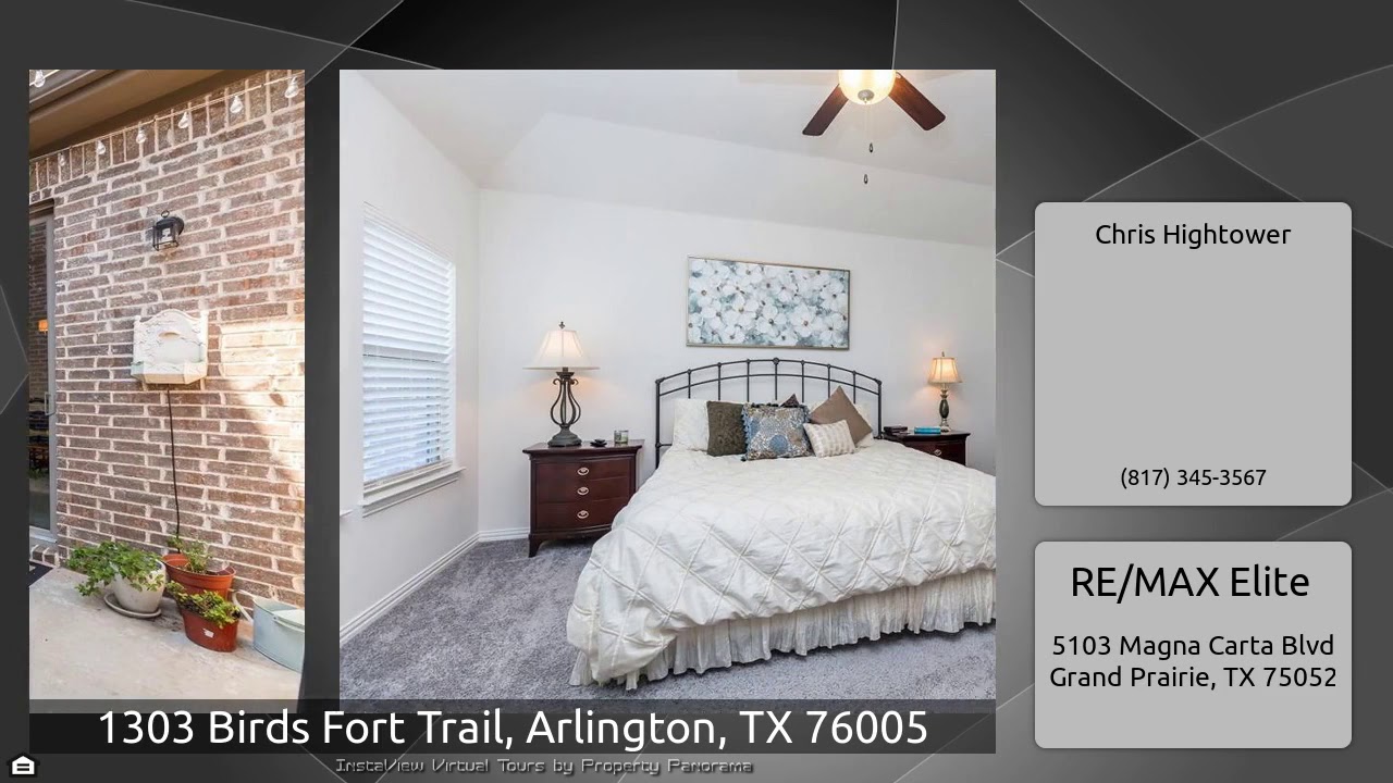 The Virtual Tour for the property at 1303 Birds Fort Trail, Arlington, TX 76005 listed for $299,900: Other homes for sale by Chris Hightower of RE/MAX Elite: This townhouse will WOW you from the inside out! A newer floor plan with a private patio & across the street from a planned natural area with trails, ponds and wildlife. Upstairs are two bedrooms a spacious loft with two full baths and laundry space. Downstairs is an open concept living, kitchen and dining area. Also down is a half bath, office with french doors and formal dining or living. You choose how to use the bonus spaces. …